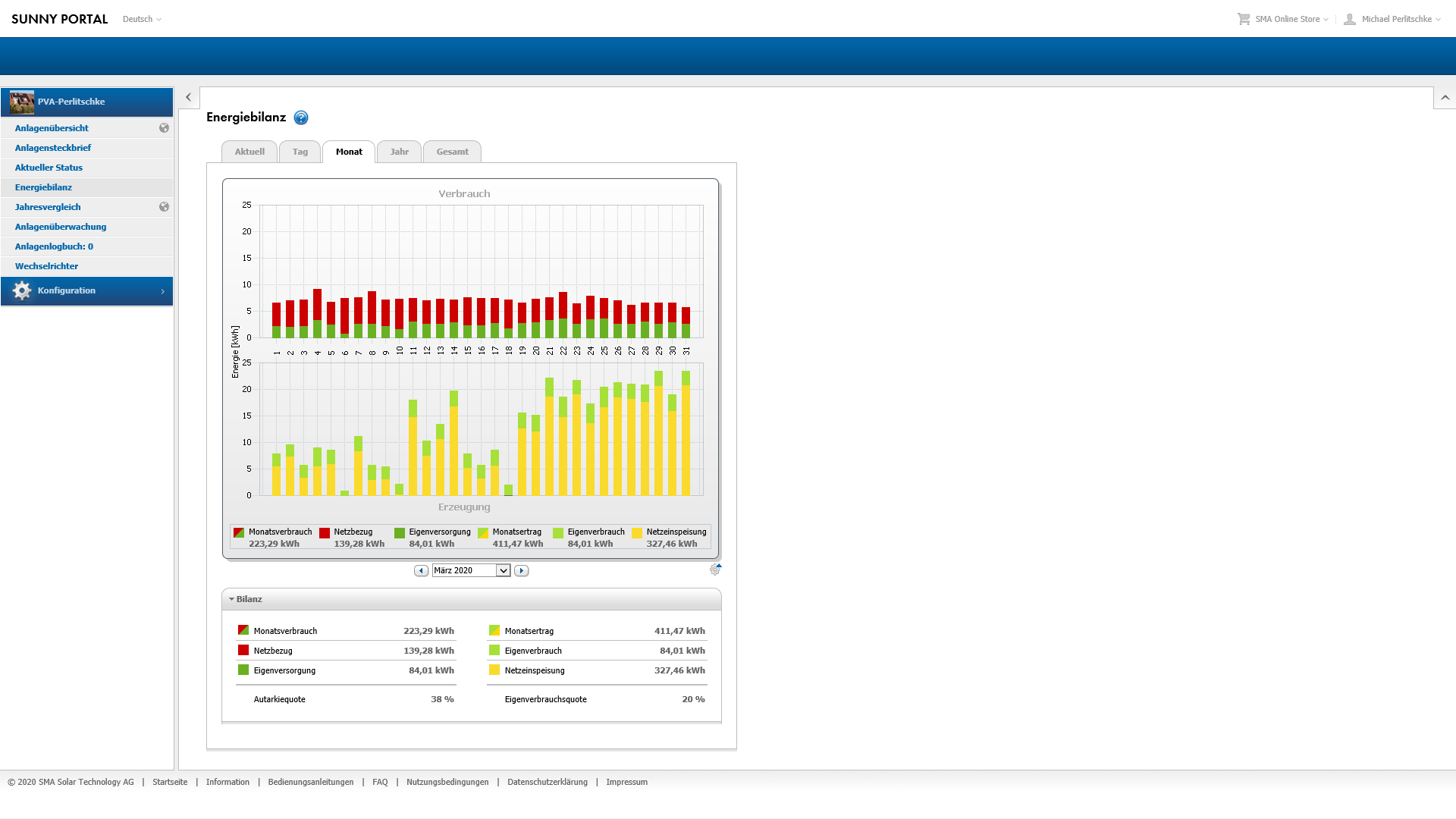 Dach-PV & Insel-Solaranlage: März-2020 (drittes Produktionsjahr abgeschlossen)
