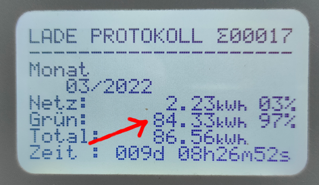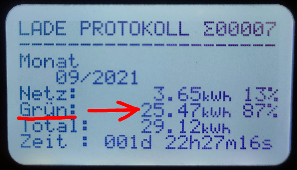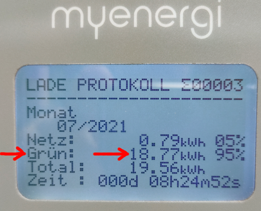 Diese vom SMA als Netzeinspeisung erfasste Energie muss nun mit der von der Zappi gemessenen und genutzten Energie (ins E-Auto umgeleiteten) entsprechend reduziert werden. In obigen Beispiel also 25,47kwh die NICHT verkauft wurden, sondern als zusaetzlicher grüner PV Strom dem Eigenverbrauch angerechnet werden muss! Und diese 25,47kwh muss auch von der Netzeinspeisung abgezogen werden...