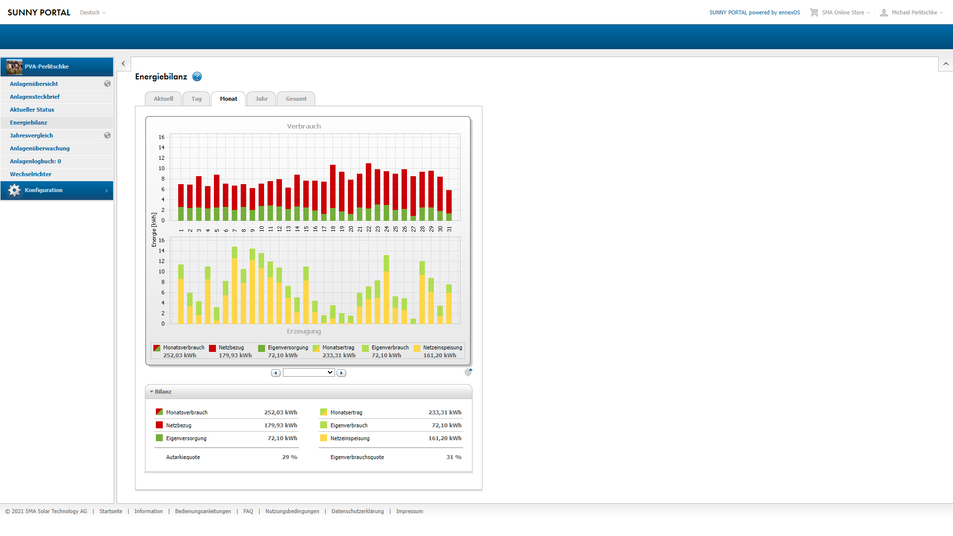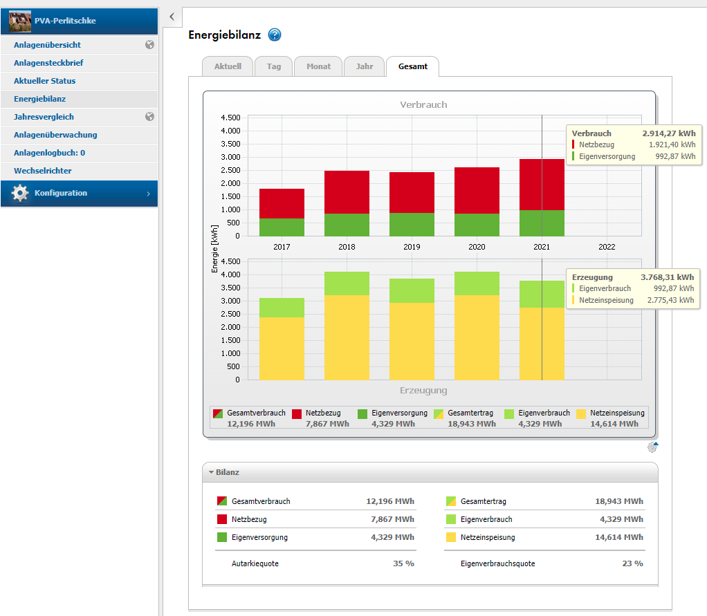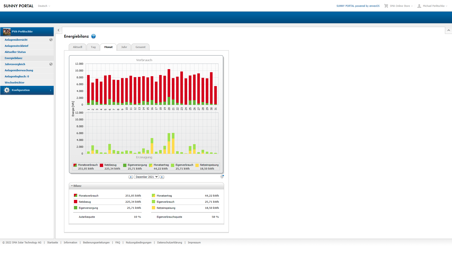 Das 5te Produktionsjahr macht es spannend. Auf Jahr gesehen (Janauar bis Dezember) war das was die PV-Anlage produziert hat eines der schlechtesten Jahren seit Inbetriebnahme. Das Jahresziel von 3351,60kwh wurde mit 3768,31kwh dennoch übertroffen. Ein ungeplantes Ertragsplus auf Jahr gesehen von 26,29%. Aber es zeigt auch wie verwöhnt man mittlerweile ist und ein Plus von 26,29% verdrängt und als negativ ansieht. Auch mein genereller Stromverbrauch hat sich zu den Vorjahren massiv erhöht. Gründe sind das ich wegen der Pandemie keinen Urlaub mehr mache und mich insbesondere im Jahr 2021 mit Energie-Hungrigen Projekten beschäftigt habe. Auf der anderen Seite habe ich aber auch einen neuen Jahres-Rekord bezüglich meines Eigenverbrauchs aufgestellt. Siehe hier: