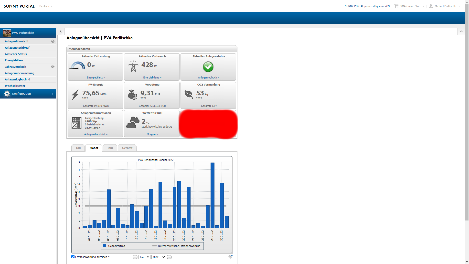 Die Dach-PV Anlage macht es im 5te Produktionsjahr wirklich extrem spannend. Der Februar & März 2022 werden entscheiden, ob das fünfte Produktionsjahr ein Flop oder Durchschnitt wird. 602 Euro ist das Minimalziel. D.h. in den kommenden 2 Monaten müssen 65 Euro in die Kasse gespühlt werden. Wenn das Wetter halbwegs mitspielt, sollte das problemlos möglich sein. Diesmal geht es also nicht drum neue Rekorde zu reissen, sondern irgendwo im Mittelfeld zu landen. Also im Idelfall sogar die Marke von 606 Euro zu knacken. Das ist durchaus machbar so die Sonne mitspielt. Es bleibt also spannend!