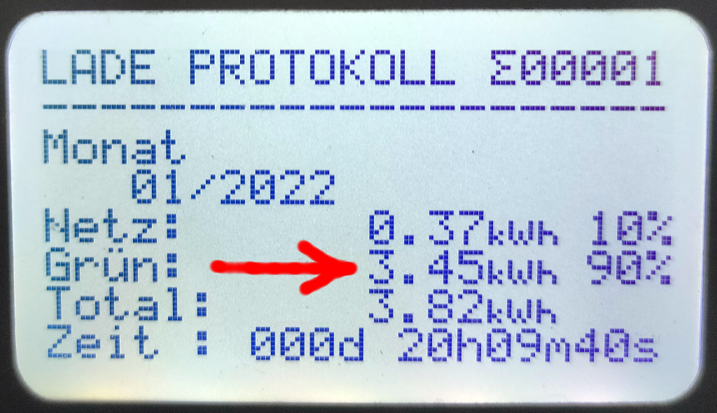 Diese vom SMA als Netzeinspeisung erfasste Energie muss nun mit der von der Zappi gemessenen und genutzten Energie (ins E-Auto umgeleiteten) entsprechend reduziert werden. In obigen Beispiel also 18,16kwh die NICHT verkauft wurden, sondern als zusaetzlicher grüner PV Strom dem Eigenverbrauch angerechnet werden muss! Und diese 18,16kwh muss auch von der Netzeinspeisung abgezogen werden...