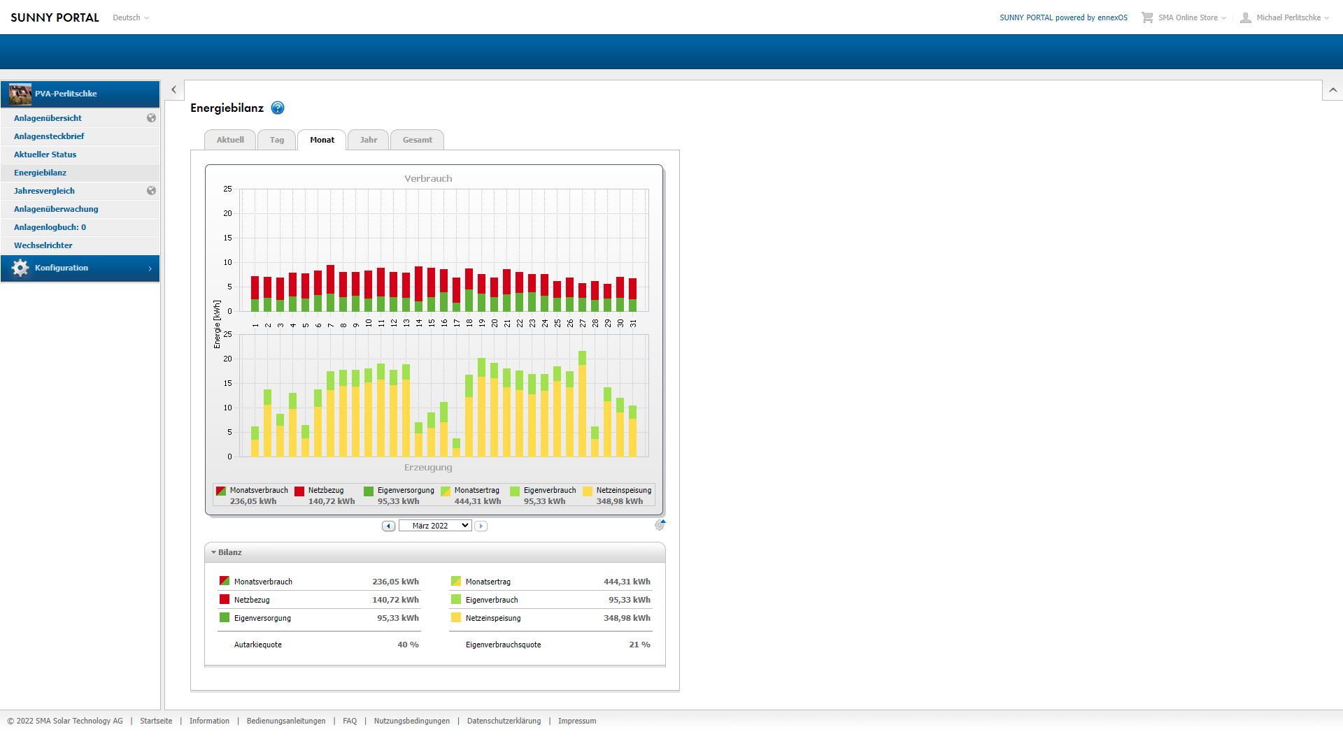 -März: 32.55 Euro Gewinn durch Verkauf und Einsparung durch Eigenverbrauch 48,80 Euro: Summe 81,35