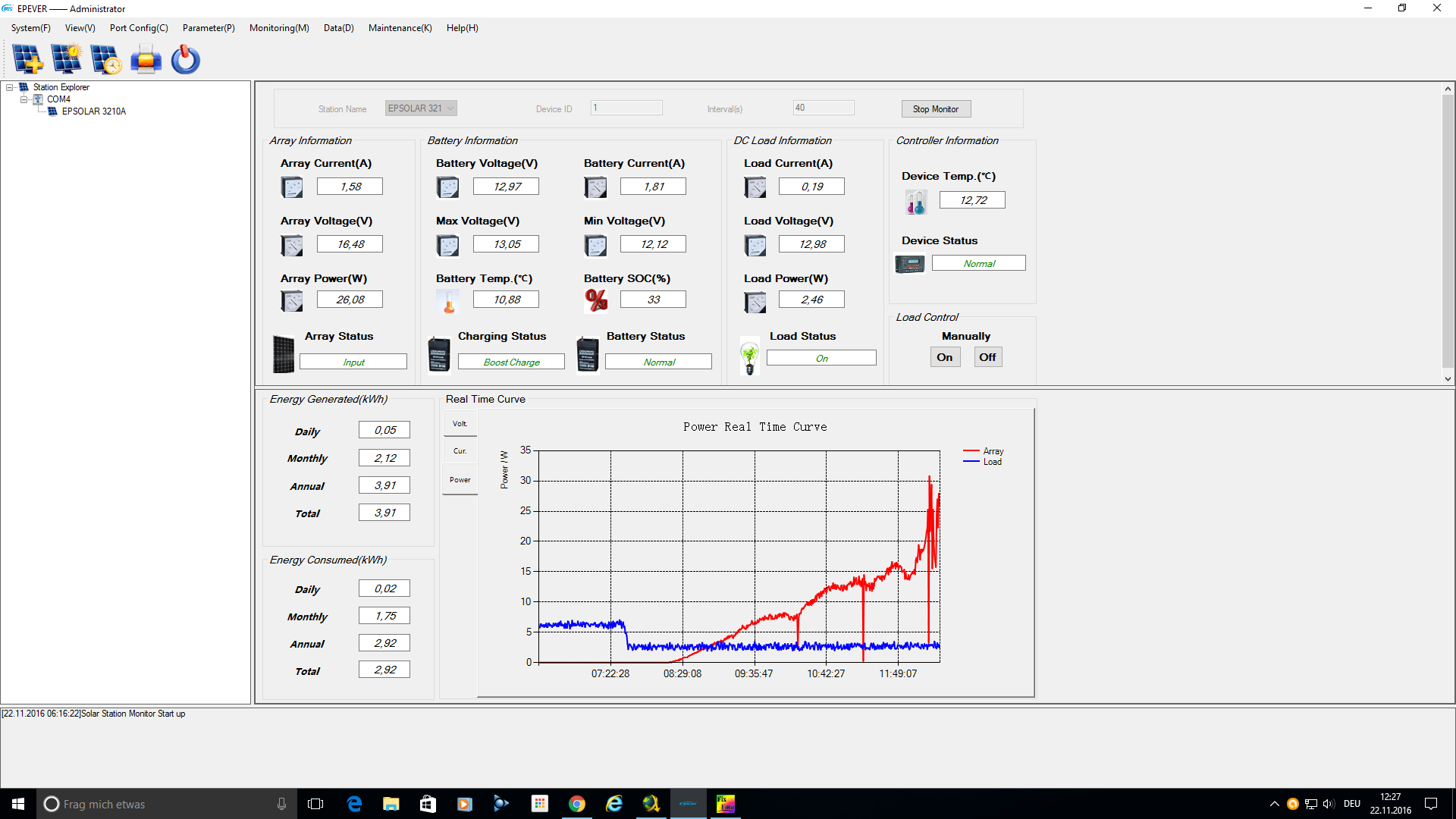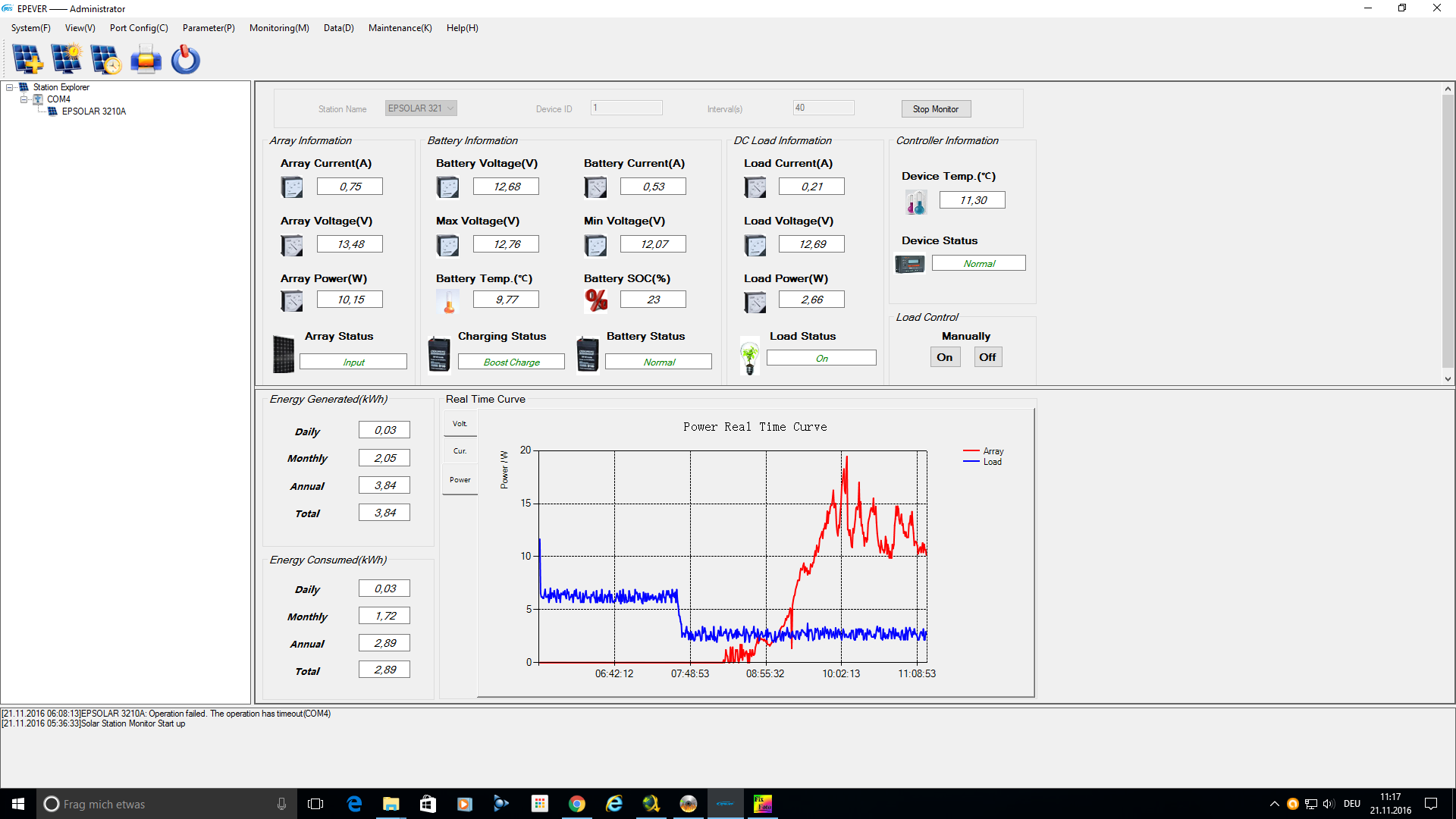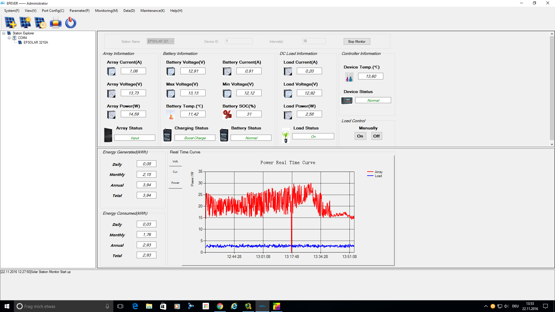 Re: Solaranlage: Inbetriebnahme 16.10.2016; 17 Uhr; Tag 0