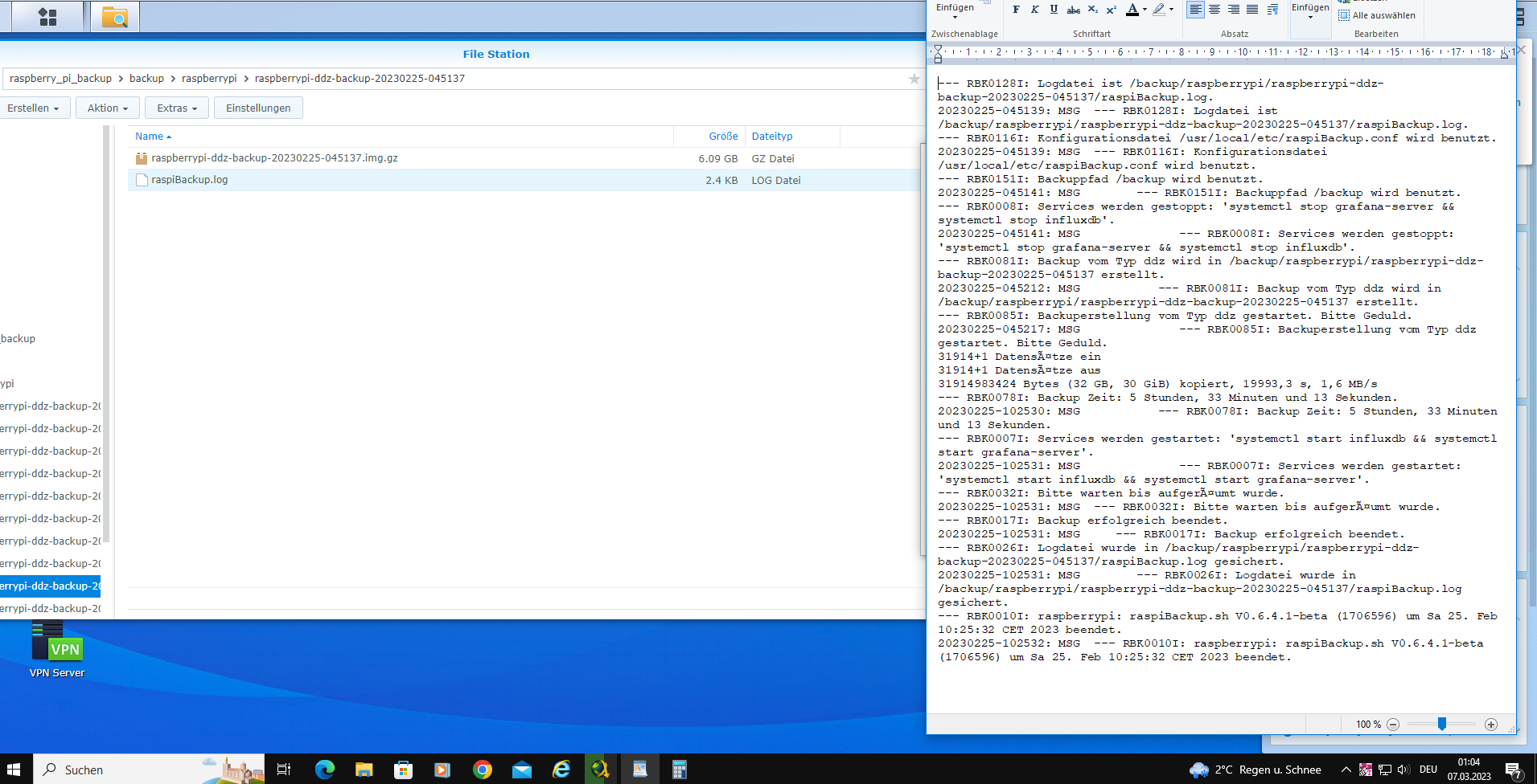 Nun hat der Rasberry Pi ab 1:01 Uhr Nachts in Summe max. 6 Stunden Zeit sich um das Voll-Backup der 32GB SD-Karte zu kuemmern.