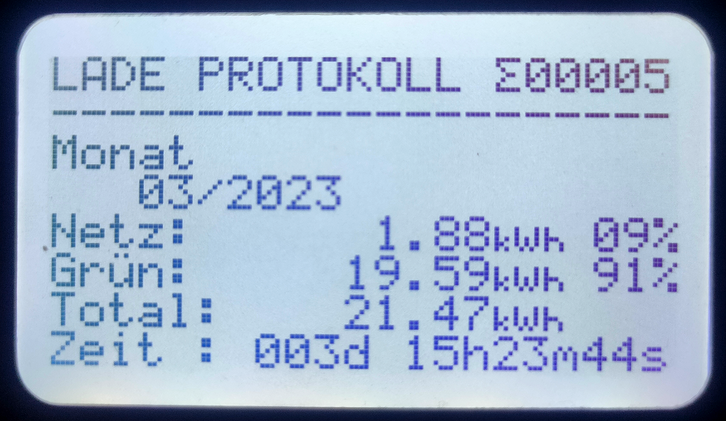 Die myenergie ZAPPI Wallbox: Da der Maerz Wetterseitig eher gruselig war, hatte die Zappi-Wallbox ohne Ueberschuss vom Dach kaum etwas zu tun. 2mal hatte ich den Wagen kurz an der Zappi haengen. In dieser kurzen Zeit flossen 19,59kwh Überschuss vom Dach direkt in den Wagen. Da das SMA Energy-Meter ( aufgrund der 3 Phasen-Zappi Installation ) nicht erkennt, dass Strom ins Auto umgeleitet wird, wird der Ueberschluss von SMA und dessen Energie Meter als EXPORT dargestellt welcher vergütet wird. Auch dann, wenn dieser von der Zappi automatisch in das E-Auto umgeleitet. Die Zappi protokolliert allerdings sehr genau die in den Wagen umgeleitete Energie, sodass es mir mit diesen Daten möglich ist, diese weiter unten korrekt zu verrechnen. Hier der Maerz Screenshot meiner Zappi-Wallbox: