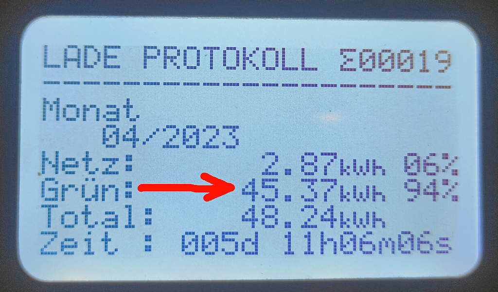 Diese vom SMA als Netzeinspeisung erfasste Energie muss nun mit der von der Zappi gemessenen und genutzten Energie (ins E-Auto umgeleiteten) entsprechend reduziert werden. In obigen Beispiel also 45,37kwh die NICHT verkauft wurden, sondern als zusätzlicher grüner PV Strom dem Eigenverbrauch angerechnet werden muss! Und diese 45.37kwh muss auch von der Netzeinspeisung abgezogen werden, damit wieder alles korrekt gerechnet werden kann. Siehe nächsten Absatz...