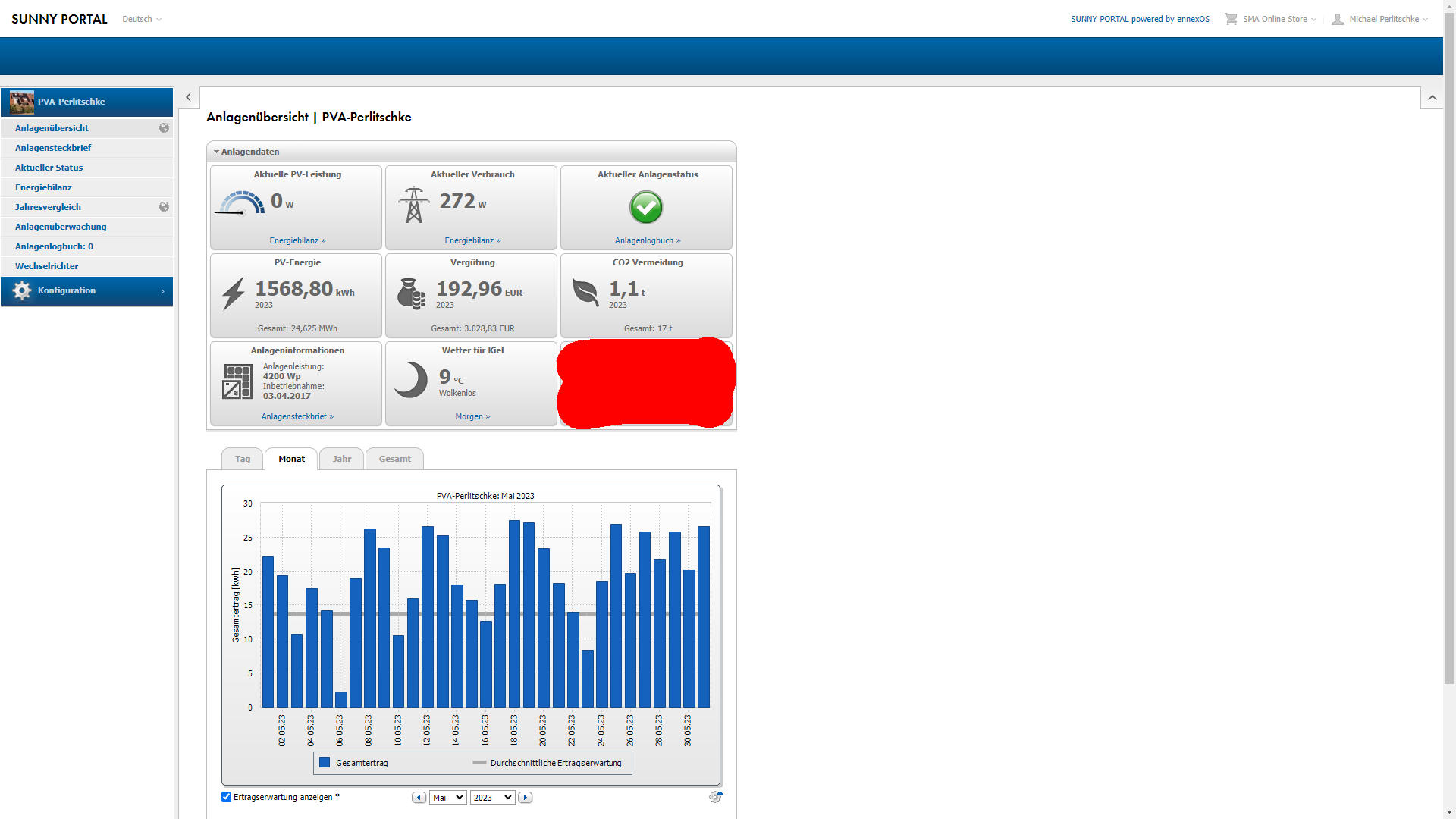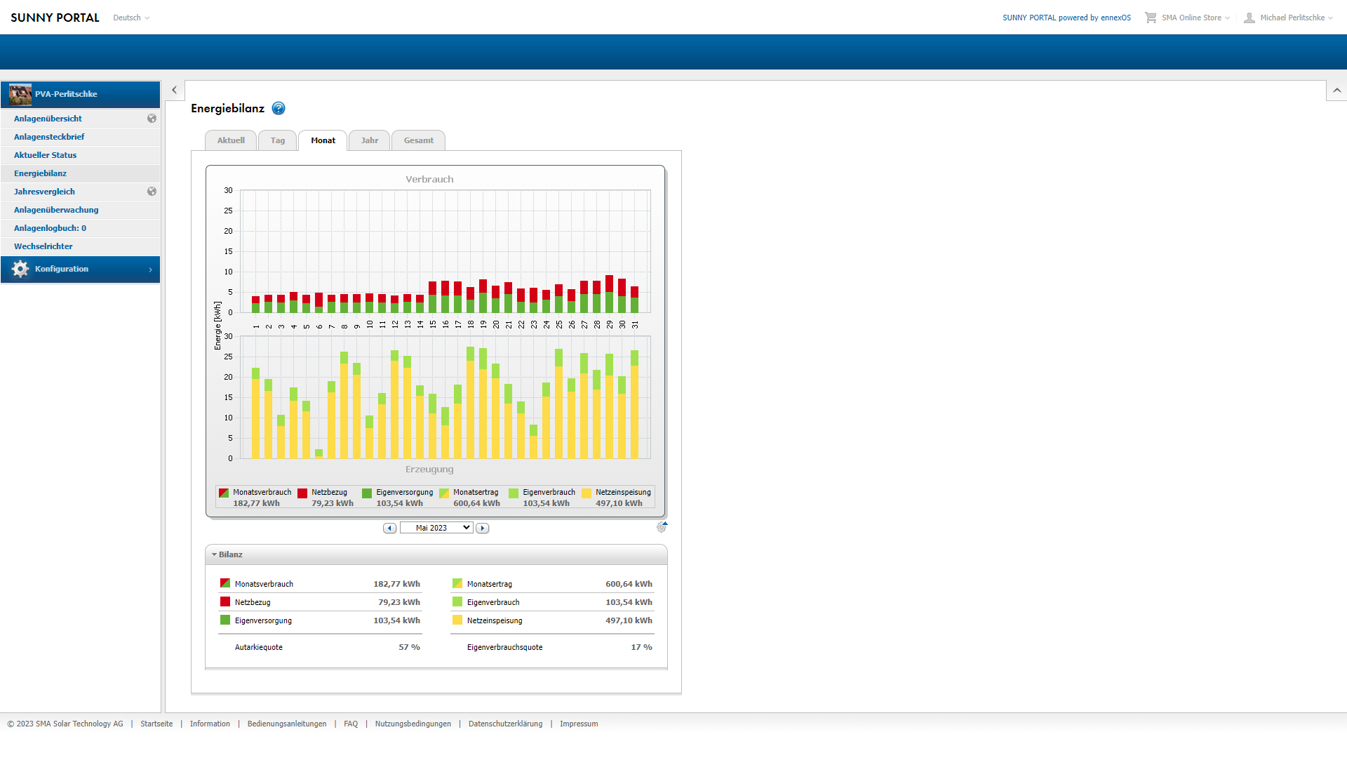 -Mai: 49,80 Euro Gewinn durch Verkauf und Einsparung durch Eigenverbrauch 56,71 Euro: Summe 106,51 Euro