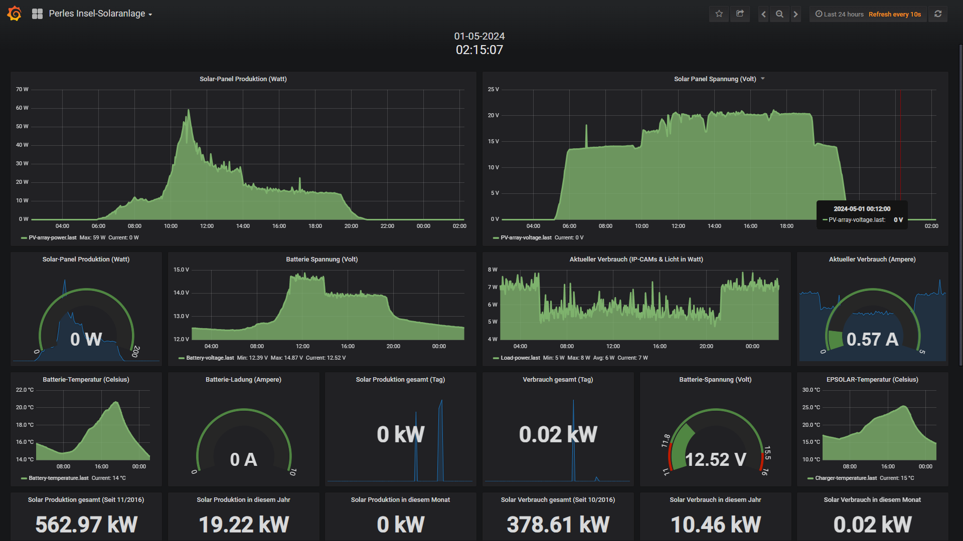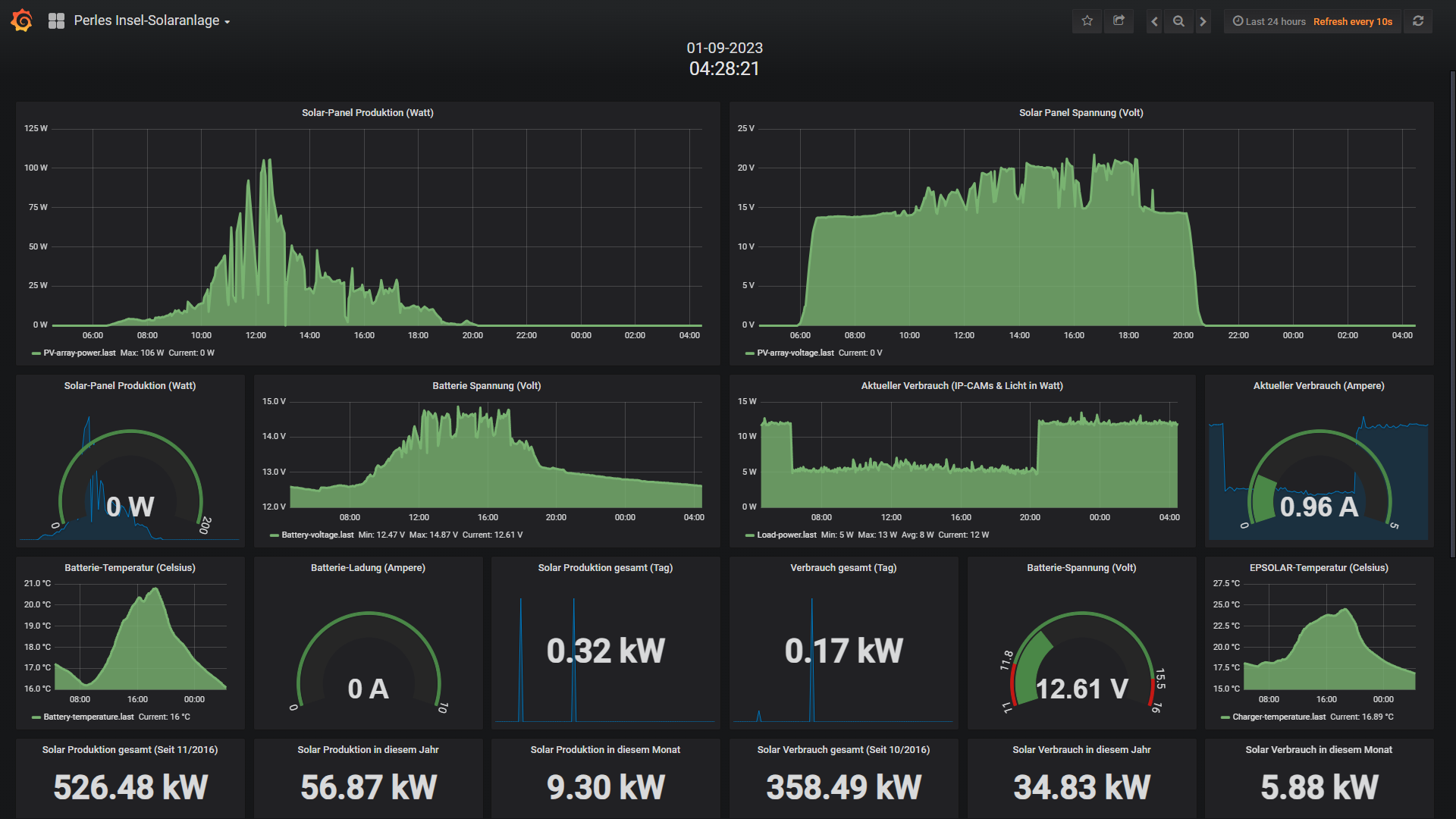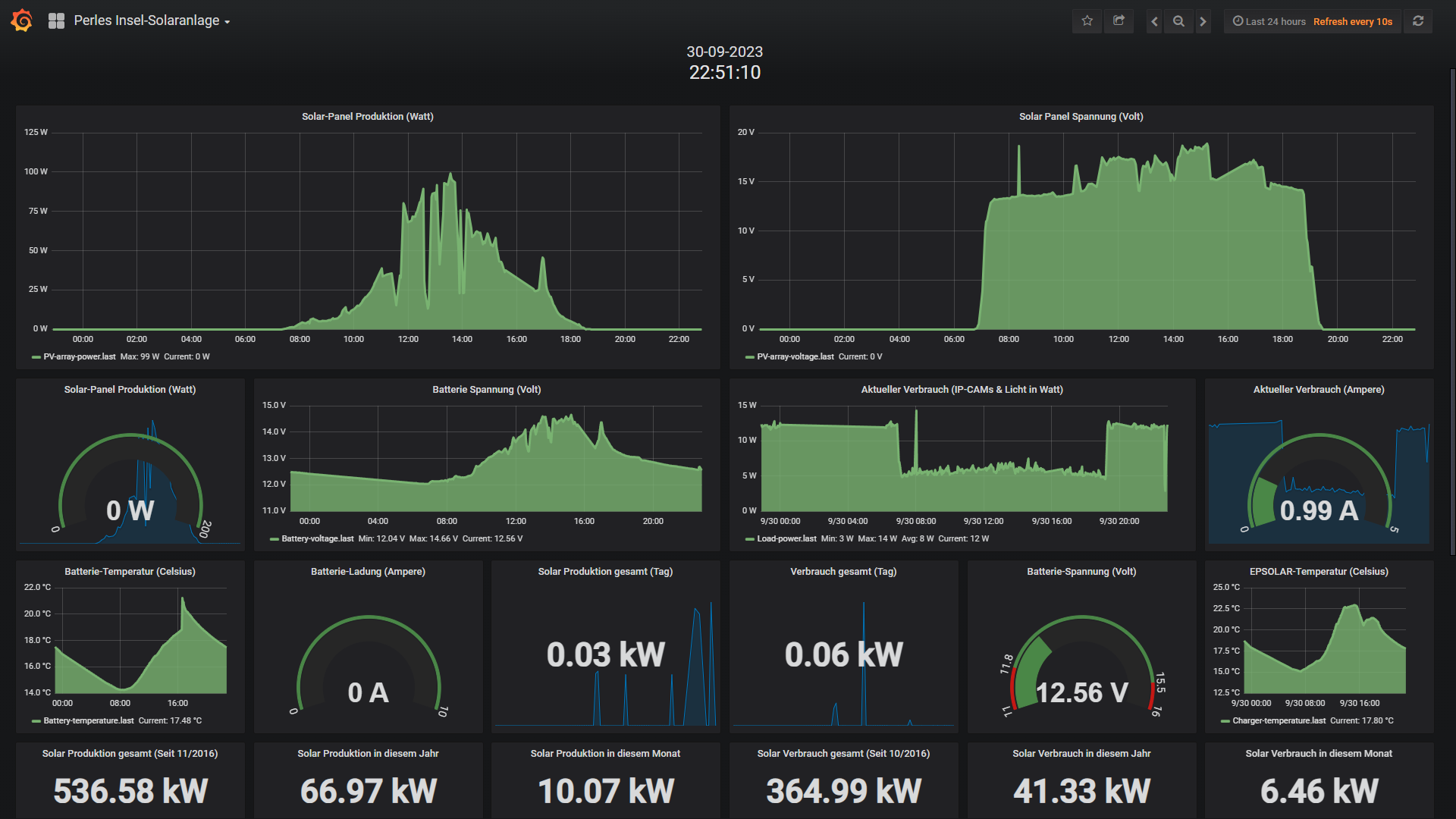 Trotz aller Umstände (Akkus in denen 40% Wasser fehlten) läuft die Insel-Anlage problemlos und Fehlerfrei. Backup WLAN-Mod und ggf. der Akku-Austausch des alten 2017 installierten 100Ah Akkus stehen in kürze an.