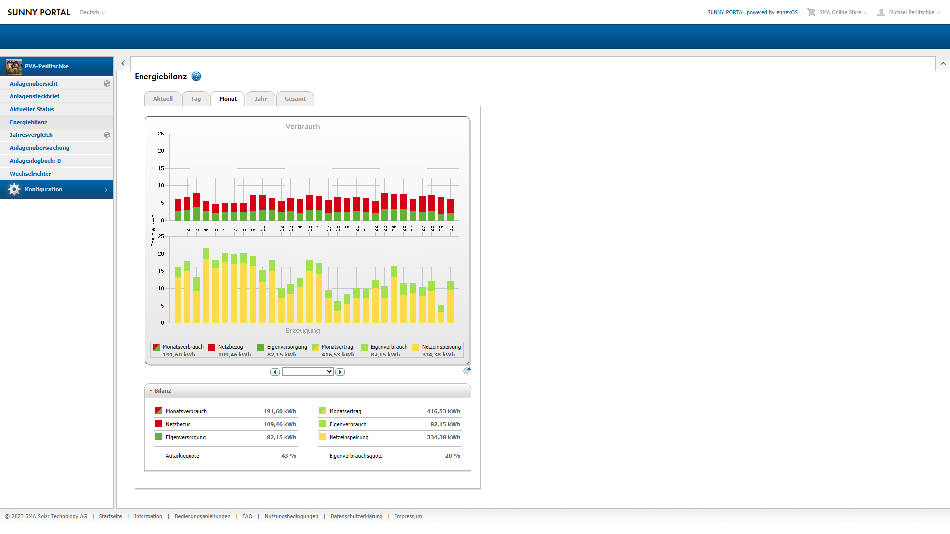-November: 8,11 Euro Gewinn durch Verkauf und Einsparung durch Eigenverbrauch 12,06 Euro: Summe 20,17 Euro