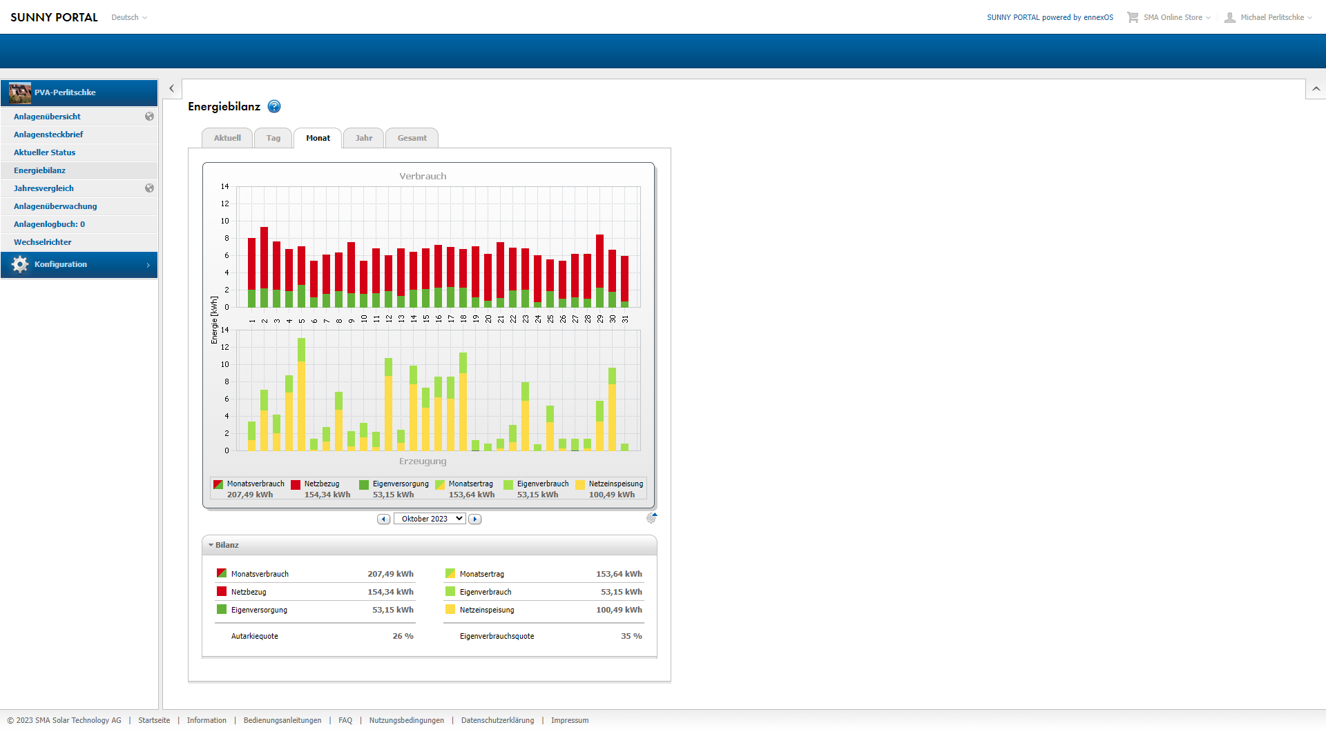 -Oktober: 8,69 Euro Gewinn durch Verkauf und Einsparung durch Eigenverbrauch 29,61 Euro: Summe 38,30 Euro