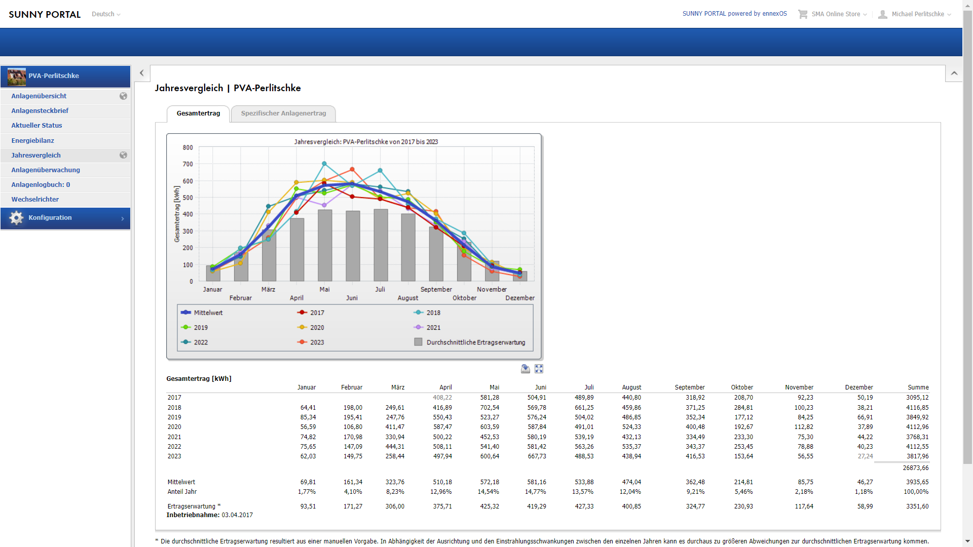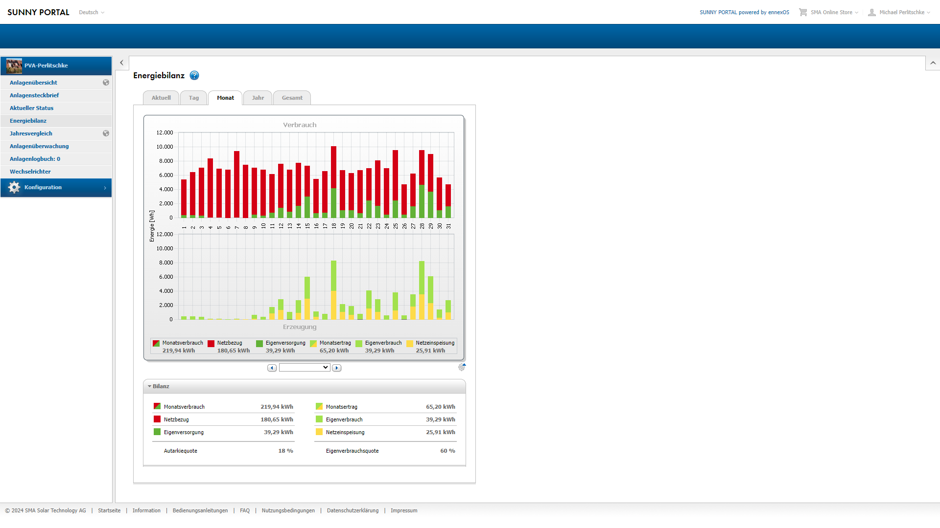 Summe nach dem nun 9 Produktions-Monaten im 7 Produktionsjahr: 691,99 Euro