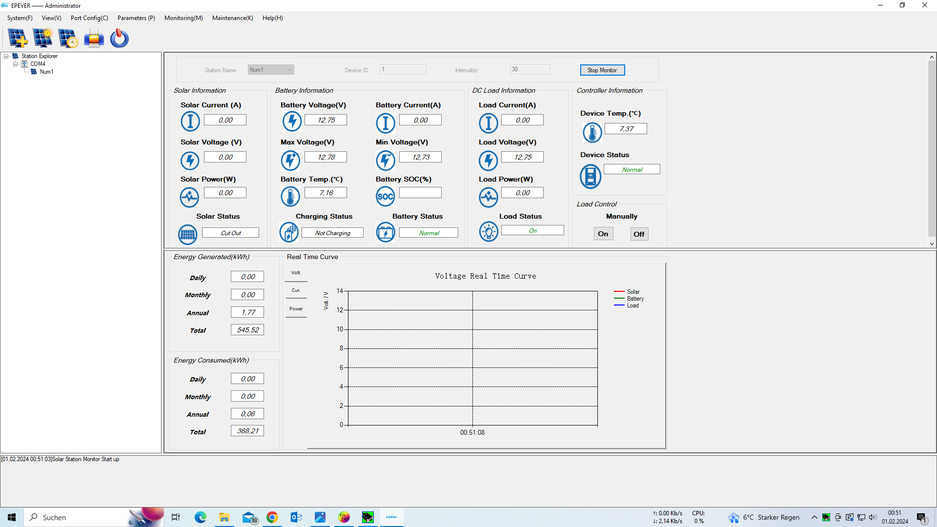 Lange Rede kurzer Sinn: Das komplette Projekt läuft nun vollautomatisch gesteuert aus einer virtuellen Maschine unter Ubuntu (Linux) und Node-Red. Es wertet den SMA tagsüber für die Akkulade-Steuerung aus und Nachts wird bis max. 275 Watt zugefüttert um das Ziel 0 Watt Bezug zu erreichen. Und ja, das alles habe ich ganz allein realisiert und mich da reingearbeitet um Logiken zu finden die dieses Ansinnen 100% korrekt erfüllen. Die letzte März Woche fand dann eine ReValidierung meiner Programmierung auf dem Programm, also die Suche nach Logik-Fehlern und Optimierung keiner Steuerungseinstellungen. Somit ist nun die vollautomatische Akkuladung (START & STOP je nach PV-Überschuss) plus die Steuerung der Nachteinspeisung (Ziel 0 Watt Bezug bei 275 Watt Maximaleinspeisung die der Hoymiles schafft) abgeschlossen, sodass sich nun mein LeFePo4 Lade und Nachteinspeise System nun komplett unabhängig und Fehlerfrei selbst regelt und steuert. Ab April geht das System nun Vollautomatisch in Betrieb.