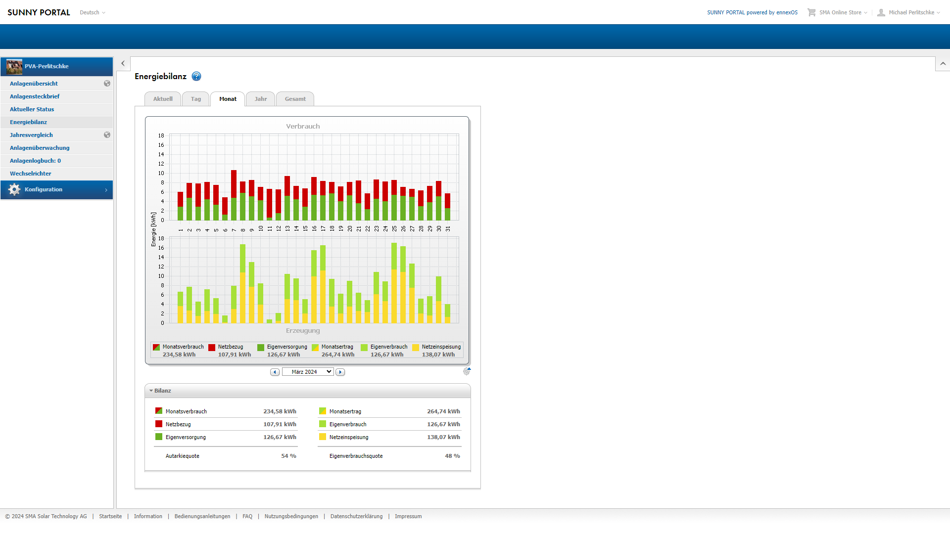 Oh my gosh...wir haben tatsächlich die 800 Euro Marke nach oben gerissen. Ohne meine Nachteinspeisung die ja nur Testweise und nicht Konstant lief, da ja einiges an Entwicklungsarbeit (und Stillstand) im März anstand, wäre das niemals möglich gewesen. D.h. der bisherige Rekord aus dem Jahr 2021 wurde quasi pulverisiert. Und diese 802 Euro ( zu 2021 sind das 21% mehr) sind lange nicht das Ende der Fahnenstange, denn am dem 1 April steigen hier die Stromkosten für 1 Kilowattstunde auf brutto 38,87 Cents. Das bedeutet, dass diese 802 Euro erst der Anfang sind und wir Betriebswirtschaftlich mit noch deutlich mehr Ertrag pro Jahr rechnen müssen. Das ganze zudem noch befeuert (bis Ende Okt.) durch meine vollautoamtische DIY Nacheinseisung / Speicherlösung welche meinen Eigenverbrauch deutlich eröhen wird was sich aus positiv auswirkt. Wirklich geil, denn so senken wir die Armortisationszeit sehr deutlich, sodass ich meine Schaetzungen nun deutlich nach unten korrigieren kann was ca. 1 Jahr weniger entspricht. Auch sieht man das der Eigenverbrauch eine immer wesentlichere Rolle Betriebswirtschaftlich spielt. Sind die Bezugskosten für Strom gering, macht eine Einspiselösung und auch die Erhöhung des Eigenverbrauchs nur bedingt Sinn. Aber schon 2017 war klar das die Preise steigen werden und nun haben wir den Punkt an dem der Eigenverbrauch des Betriebswirtschaftliche Zugpferd in der Installation ist. Aber warten wir es ab und schauen einfach mal was das 8te Produktionsjahr an hoffentlich positiven Überraschungen für uns bereit hält.