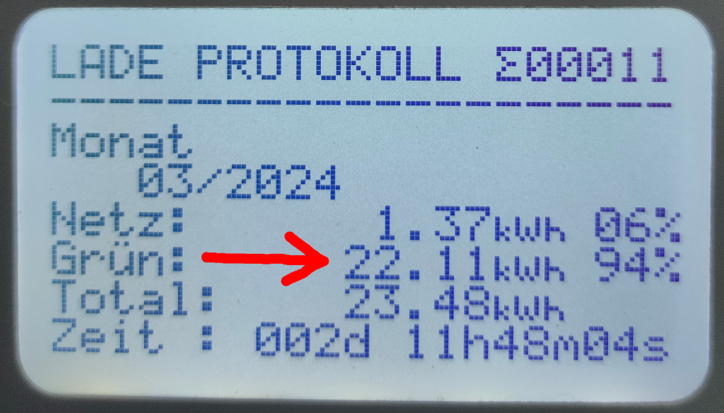 Nun aber zum März 2024 mit dem Faktor E-Auto resp. Zappi-Wallbox also das Ergebnis des letzten 12 Monats im 7ten Betriebsjahr. Vom Dach kamen in diesem März 2024 in Summe 264,74kwh bei einer Ertragserwartung von 306kwh. Ein glückliches Minus von nur 13,5% also durchaus noch verschmerzbar. Der Stromzukauf von den Stadtwerken lag für diesen Monat bei 107,91kwh (so wenig war es noch nie, was mit meiner neuen LiFePo4 DIY Einspeisung zu tun hat), welche bei 35,67 Cents pro Kilowattstunde meines Ökostrom-Tarifes ca. 38,49 Euro Strom Einkaufskosten bedeutet. Von den produzierten 264,74kwh habe ich selbst 126,67kwh plus 22,11kwh für das E-Auto, also in Summe 148,78kwh verbraucht, was eine Ersparnis bei einem Kilowattstundenpreis von 35,67 Cents in Summe 53,07 Euro ergibt. Den Rest, also 138,07kwh minus 22,11kwh (E-Auto)= 115,96kwh an Strom wurden für 0,123 Cents ins Netz abverkauft, was letztendlich 14,26 Euro an Einnahmen durch den Stromverkauf bedeutet.