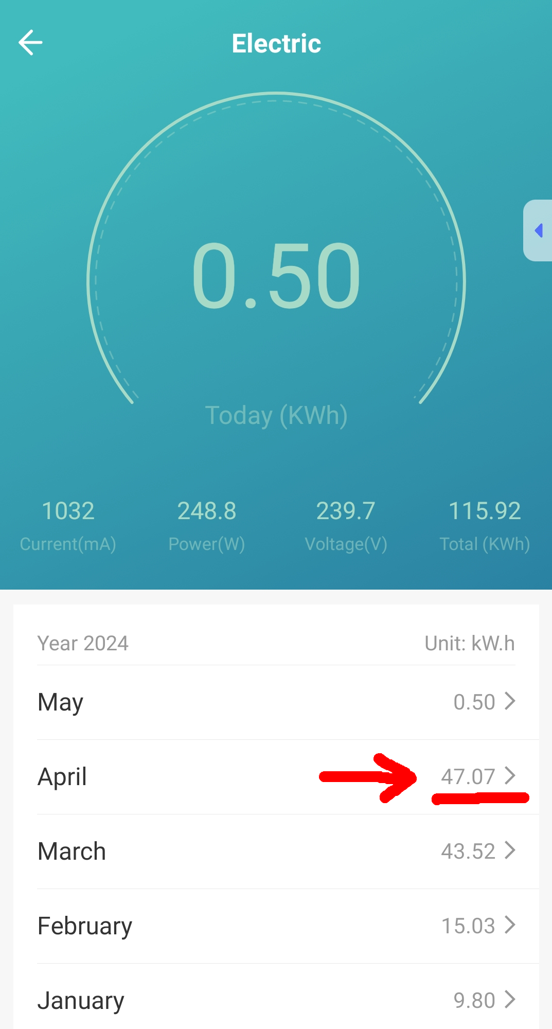 Summe nach dem nun 4 Produktions-Monaten im siebten Produktionsjahr: 439,16 Euro