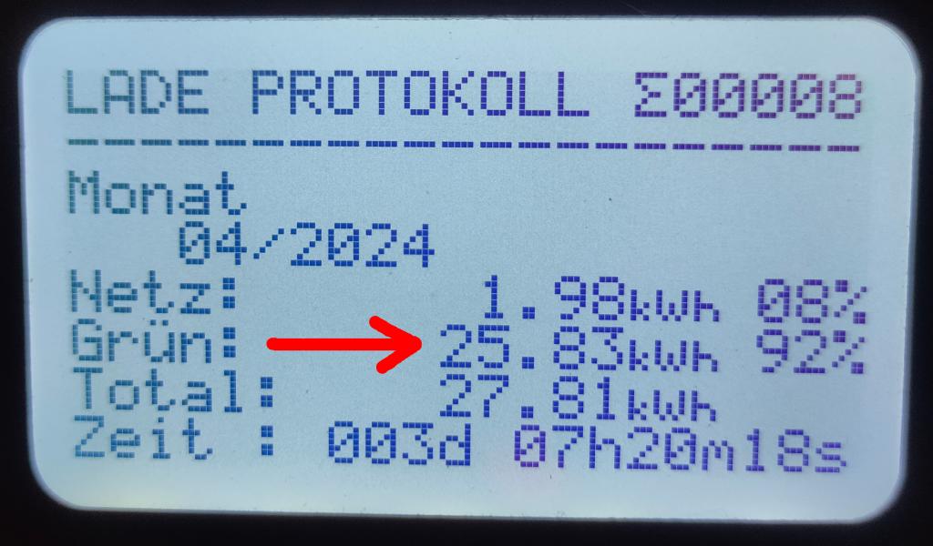 Summe nach dem nun 1 Produktions-Monat im 8 Produktionsjahr: 91,04 Euro