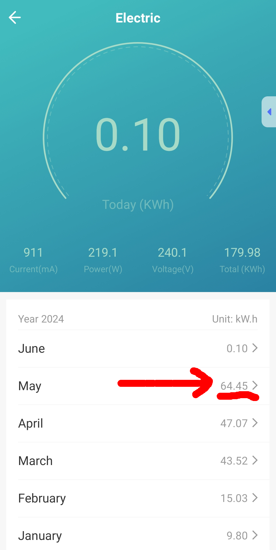 Da die Nachteinspeisung diesen Mai volle Pulle lief, gab es bezüglich des Strombezugs ein neuen Rekord. Denn im Mai lag dieser sonst immer zwischen 100-120kwh. Mit meiner Nachteinspeisung ist der Strombezug auf sensationelle 28,23kwh geschrumpft. Also <1kwh pro Tag! Wenn man das umrechnet liegt die Autarkieqoute für diesen Mai bei 91-92%. Allerdings gab es noch einen weiteren Effekt der den Bezugs gerade vormittags etwas schrumpfen liess. Dazu später mehr...Wie gesagt, es mussten nur 28,23kwh vom Versorger zugekauft werden. So wenig war es noch nie was gerade bei dem hohen Stromkosten seit letzten Monat von 0,3887 Cents/kwh extrem wichtig ist. Was hat die Nacheinspeisung also Nachts dynamisch in das Haus gepumpt? 64,45kwh wurden Nachts im Mai gedeckelt und diese mussten nicht bezogen werden. In Summe hat die Nachteinspeisung nun knapp 180kwh ins Haus geliefert, sodass die ersten 70 Euro eigefahren wurden. Das sind immerhin knapp 10% der Investitions-Summe und die Anlage laeuft im grunde genommen erst 2 Monate.