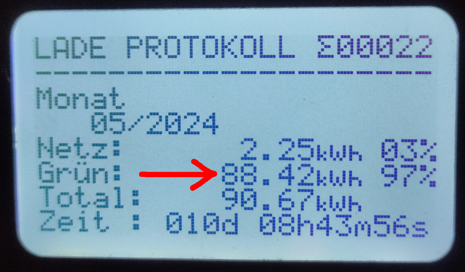 Die myenergie ZAPPI Wallbox: Da diesen Monat kein Mangel an Strom war und auch noch die Carport-Anlage (Balkonkraftwerk) wie blöde am Strom produzieren ist, floss auch etwas Energie in mein Kona. Da ich zudem im Mai etwas Urlaub hatte, wurde der Wagen auch nicht viel bewegt. In Summe wurde 88,42kwh grünen Strom in meinen Electro-Kona geschaufelt. Da das SMA Energy-Meter ( aufgrund der 3 Phasen-Zappi Installation ) nicht erkennt, dass Strom ins Auto umgeleitet wird, wird der Ueberschluss von SMA und dessen Energie Meter als EXPORT dargestellt welcher vergütet wird. Auch dann, wenn dieser von der Zappi automatisch in das E-Auto umgeleitet. Die Zappi protokolliert allerdings sehr genau die in den Wagen umgeleitete Energie, sodass es mir mit diesen Daten möglich ist, diese weiter unten korrekt zu verrechnen. Hier der Mai Screenshot meiner Zappi-Wallbox: