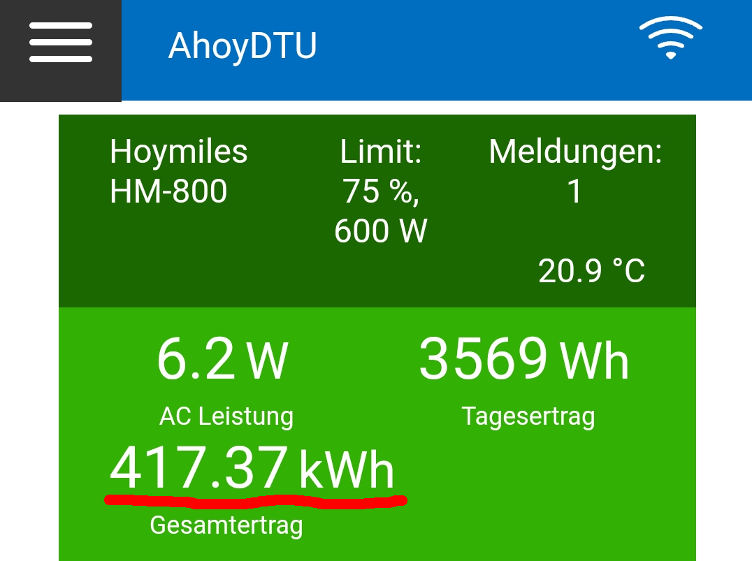 In diesem Mai kommt alles zusammen. Ein gestiegener Strompreis; das E-Auto; Strombezug in homöopathischer Dosis; das neue Balkonkraftwerk was die Nachteinspeisung und Haus bedient und eine PV-Anlage die wie blöd Strom ins Netz rotzt. 160 Euro Ertrag in einem Monat! WOW, das ist Rekord aber wundert ehrlich gesagt nicht wirklich. Allerdings, darf man nicht vergessen das die Carport-PV (Balkonkraftwerk) 488 Euro gekostet hat und die dynamische Nachteinspeisung auch mit 700 Euro Investitionskosten hinzu kommt. Also in Summe müssen nun 1188 Euro mehr erwirtschaftet werden bis alles ( grosse PV; Balkonanlage und Speicher) im Geld ist. Auf der anderen Seite sieht man aber auch schon jetzt wie brutal dieses Trio agiert und was Betriebswirtschaftlich dabei rum kommt. 251 Euro in 2 Monaten wo das Balkonkraftwerk gerade erst 21 Tage aktiv läuft. Ich verwette meinen Hintern drauf das dieses 8te Jahr ein betriebswirtschaftliches Rekordjahr wird. Da ich im Juni in den USA bin werde ich die Nachteinspeisung aber aus Sicherheitsgründen für diese Zeit deaktivieren. Es läuft zwar alles Einwandfrei, aber die Anlage ist noch neu und ich möchte Nachts schon gerne noch 2 Monate hier vor Ort sein um zu schauen ob noch etwas übersehen wurde. Also über Wochen werde ich die Anlage "noch nicht", sich selbst überlassen. Die Balkonanlage läuft aber solide (ist unkritisch) und die wird natürlich in dieser Zeit weiter laufen. D.h. im Juni wird der Zukauf also aufgrund der abgeschalteten Nachteinspeisung steigen und auch das Auto wird keine Rolle spielen. Safety first! Die Nachteinspeisung ist noch sehr jung und die Stabilität / Sicherheit der Anlage muss sich erst noch weitere 2-3 Monate beweisen...
