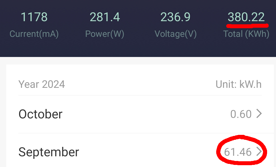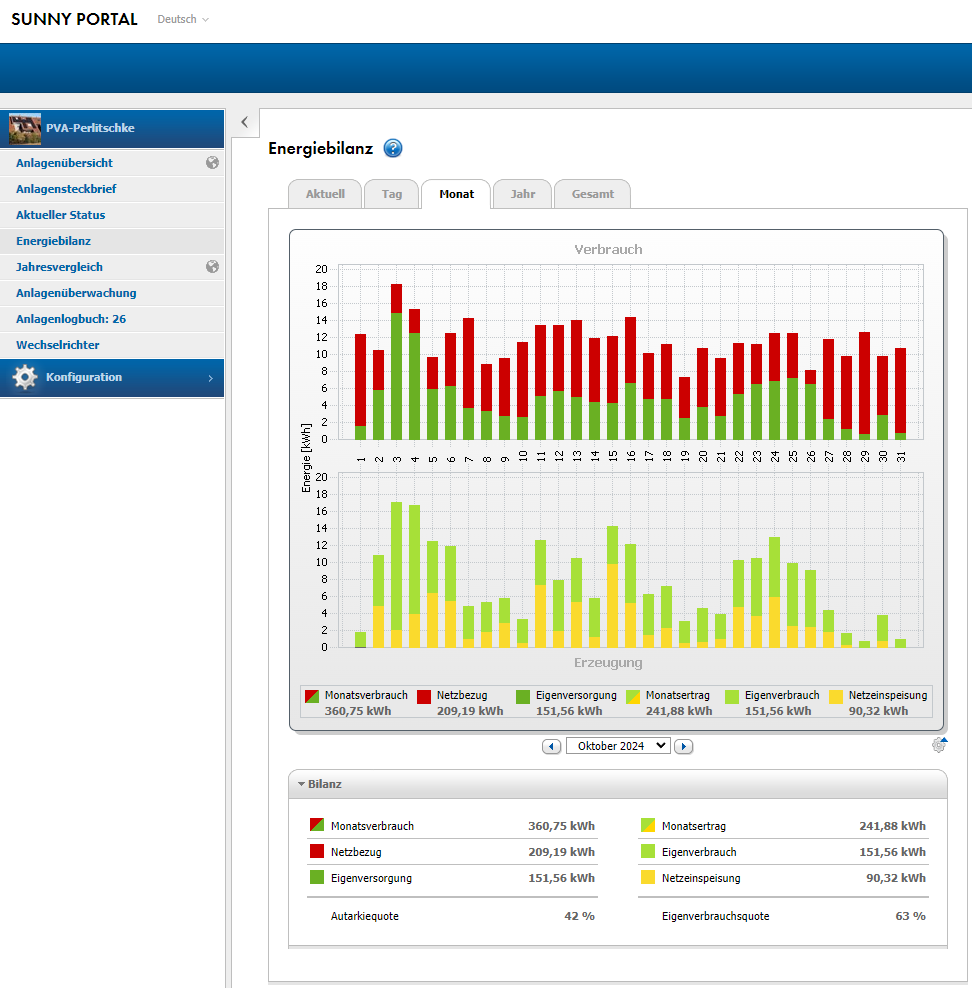 Was aber bei der Wärmepumpe zum tragen kommen wird ist das ich sobald die Heizung läuft fast alles an produzierten PV-Strom nutzen werde, der EIgenverbrauch also weiter steigen wird. Somit ist der gesunkene Strompreis am Oktober nicht dramatisch. Wir erinnern uns: Vor 2-3 Jahren habe ich nur 25 Cents bezahlt und schaut oben auf die Jahreserträge. Aber so fette Jahre wie 2023 mit >800 Euro und wohl auch 2024 werden wir hier zukünftig wohl nicht mehr so schnell sehen. Zum Glück ist die PV-Anlage schon in wenigen Jahren im Geld sodass dann die Renditephase einsetzen wird.