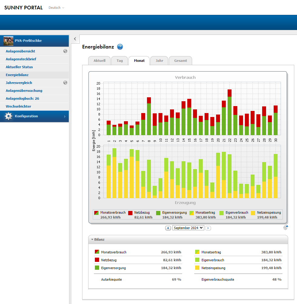 -August: 35,53 Euro Gewinn durch Verkauf und Einsparung durch Eigenverbrauch 79,98 Euro: Summe 115,51 Euro