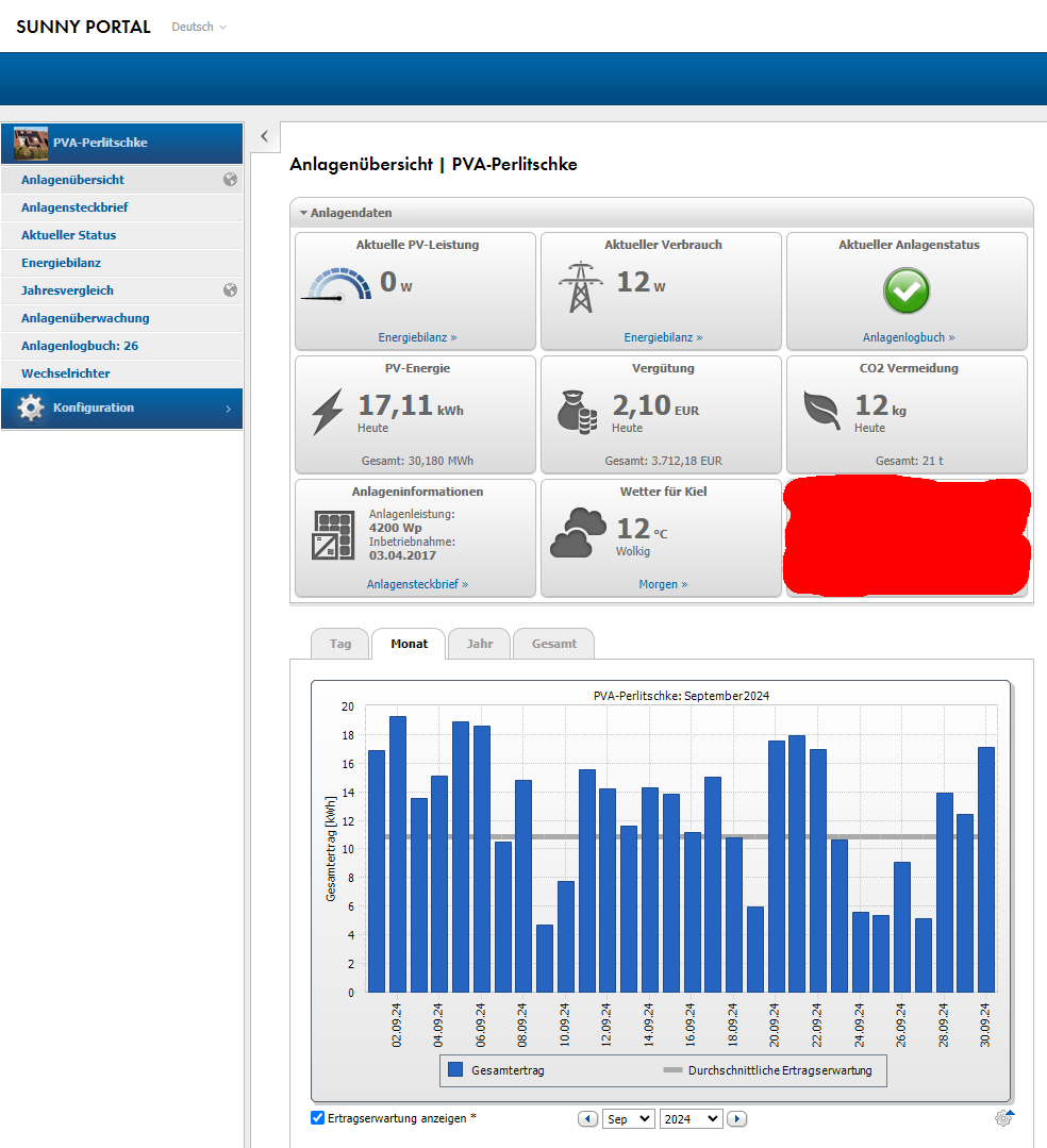 Hier die 4.2kwp Photovoltaik-Anlage auf dem Dach: Nun kommen wir zur kleinen 4,2kwp Dach PV Anlage und dem August-Ertrag. Die Ertragserwartung für den August lag bei 400,85kwh und vom Dach kamen 479,54. Das entspricht diesen Monat immerhin einem Plus von 19,63% gegenüber der Ertragserwartung sodass man sehr zufrieden sein darf denn dieses Ergebnis liegt auch wie im Vormonat im oberen Mittelfeld und bedeutet Betriebswirtschaft sehr gute Laune.