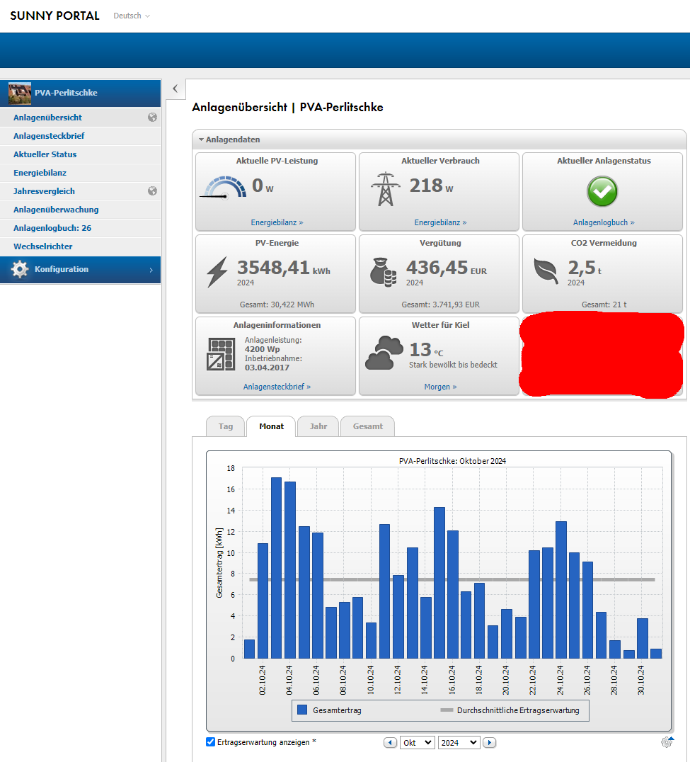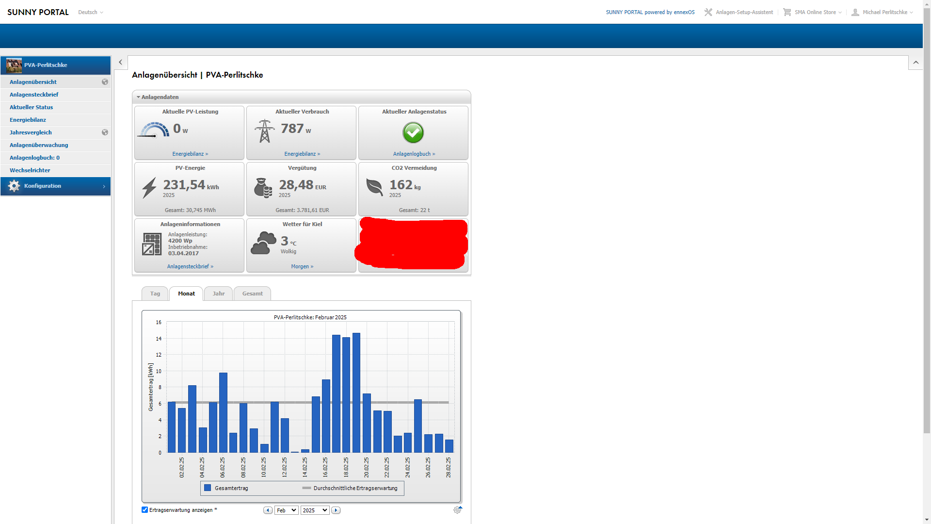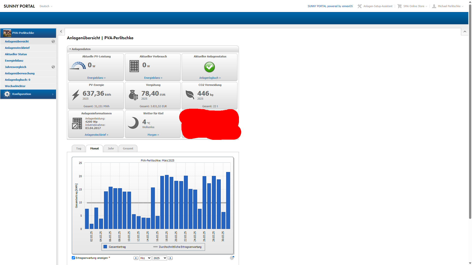 Wer nun wissen moechte was die Anlagen (4,2kwp und 200Watt Insel-Solaranlage) aktuell treiben, kann 3 Zeilen weiter unten, auf die 24/7 LIVE-Daten beider Anlagen klicken! Hinweis: Im April 2025 ist SMA zu ennexOS umgezogen (alle Daten wurden portiert), sodass es derzeit nicht mehr die Möglichkeit gibt die 4,2kwp Dachanlage LIVE öffentlich zu stellen.