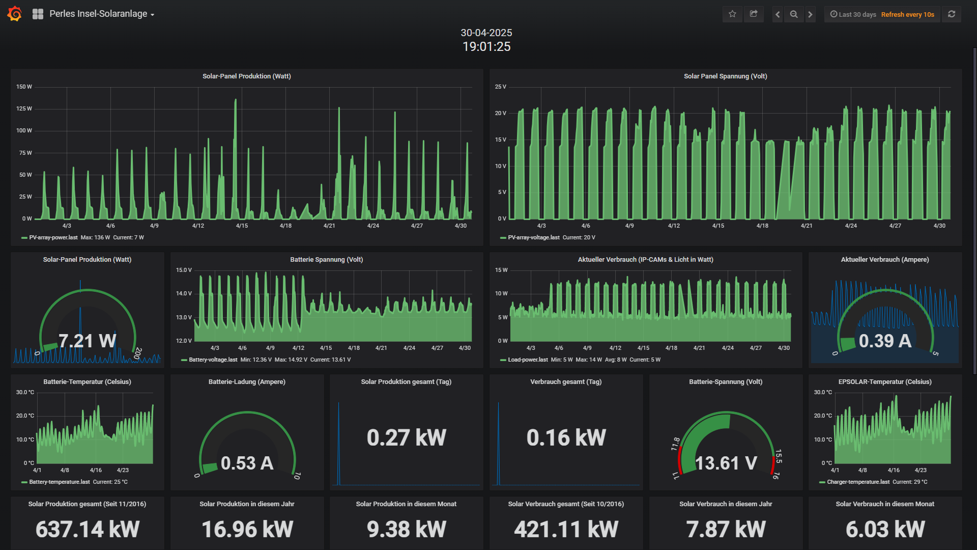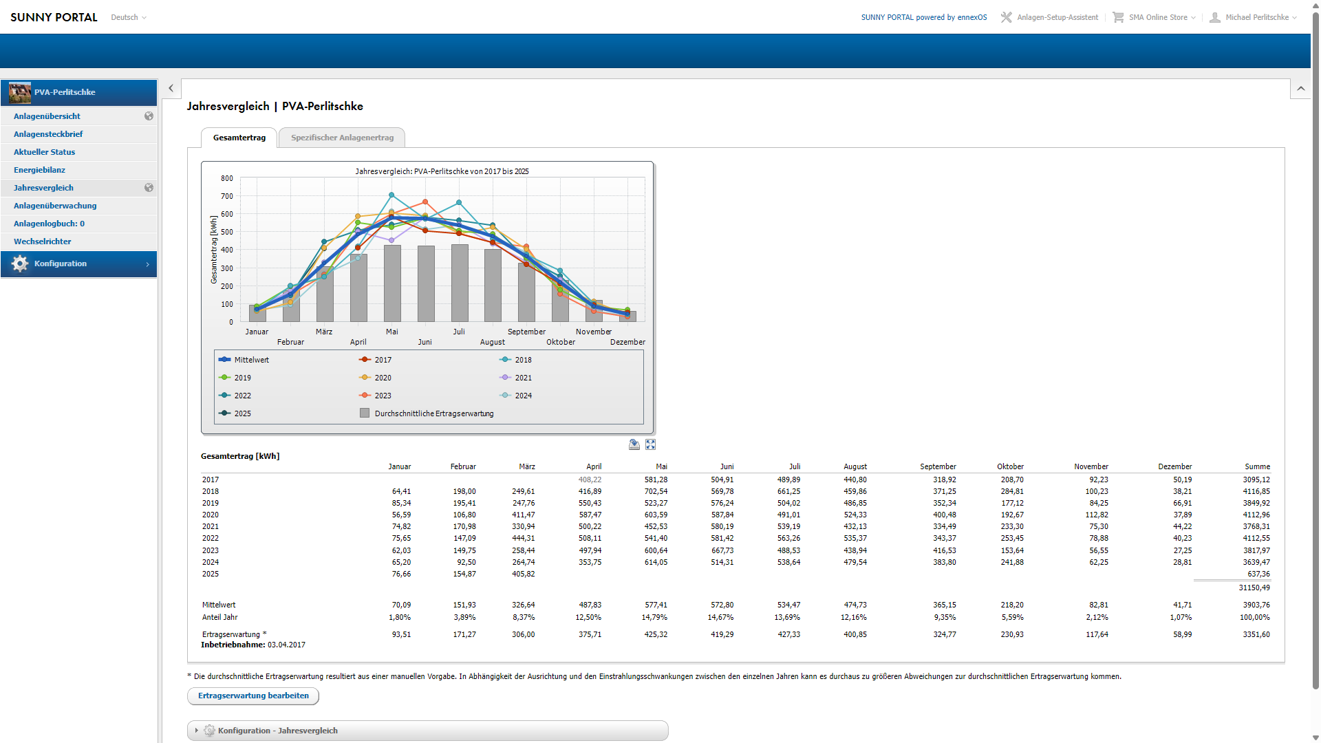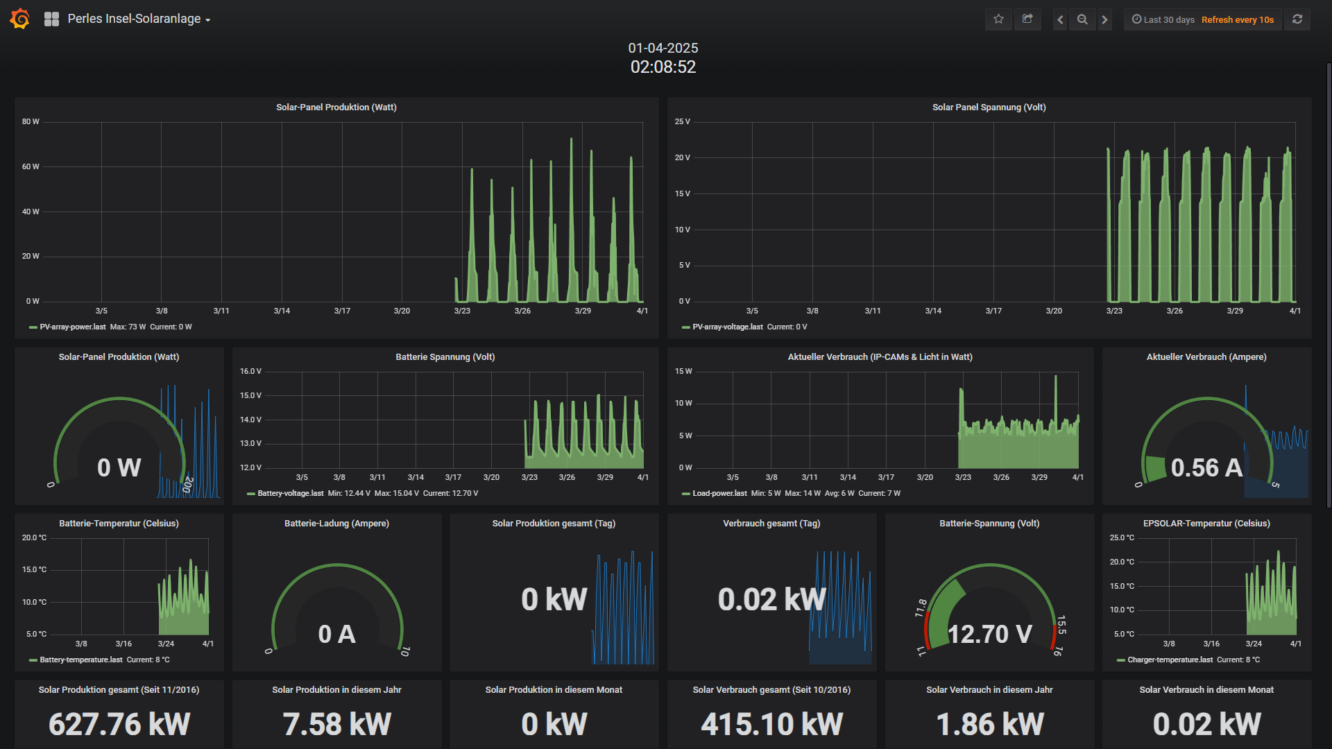 Wer nun wissen moechte was die Anlagen (4,2kwp und 200Watt Insel-Solaranlage) aktuell treiben, kann 3 Zeilen weiter unten, auf die 24/7 LIVE-Daten beider Anlagen klicken! Hinweis: Im April 2025 ist SMA zu ennexOS umgezogen (alle Daten wurden portiert), sodass es derzeit nicht mehr die Möglichkeit gibt die 4,2kwp Dachanlage LIVE öffentlich zu stellen.