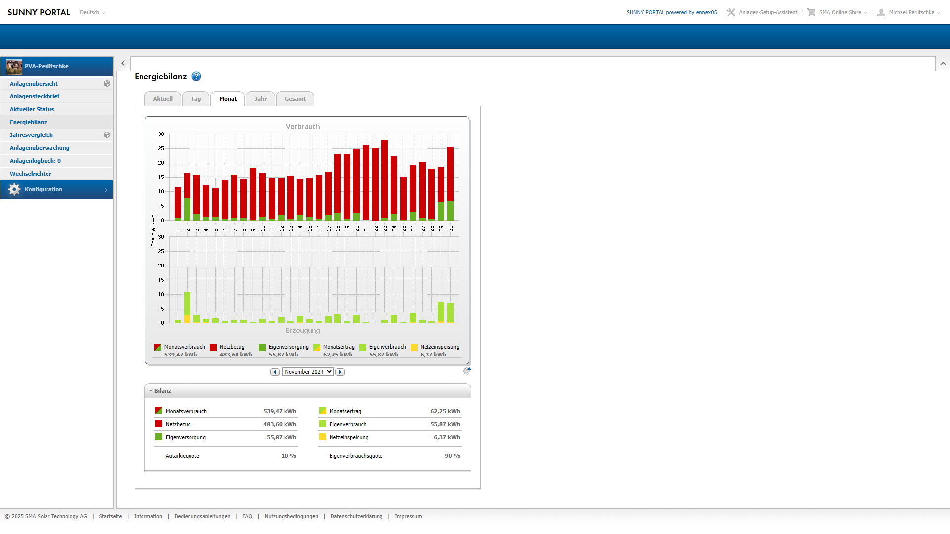 -November: 0,78 Euro Gewinn durch Verkauf und Einsparung durch Eigenverbrauch 16,21 Euro: Summe 16,99 Euro