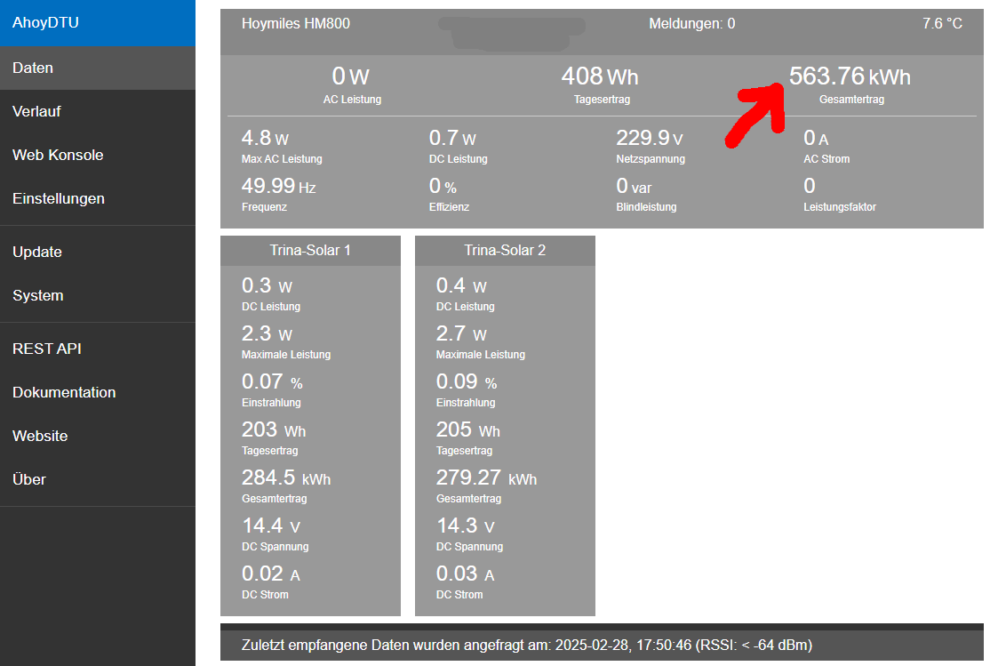 Hier die Links mit den LIVE-Daten samt Historie (Installation: 10/2016 und Data Logging-Start 22.02.2018):
