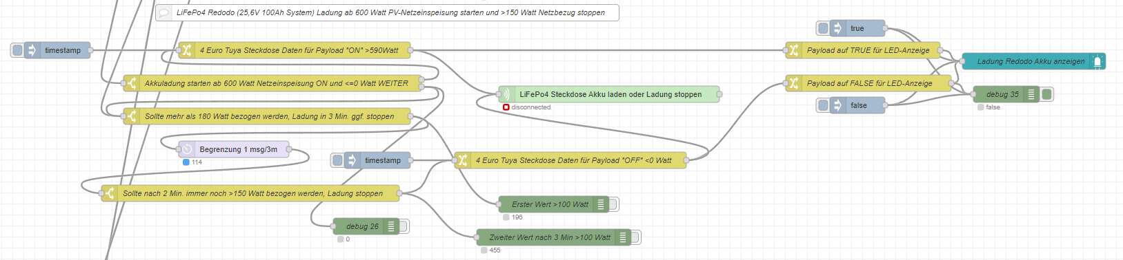 2,7kwh LiFePo4 DIY Speicher und Dynamische Akku Ladung und Nachteinspeisung: Die dynamische Nachteinspeisung mit meinem LifePo4 2,7kwh Akku lief den ganzen Monat vorzüglich. Es wurden noch mehrere Verbesserungen an der Node-Red Programmierung von mir vollzogen mit denen ich nun die letzten Kleinigkeiten optimiert und weiter verbessert habe. Da zwischen Ende April und insbesondere diesen Mai 5 Updates erzeugt wurden, habe ich diese detailiert in einem Extra-Video erklärt: