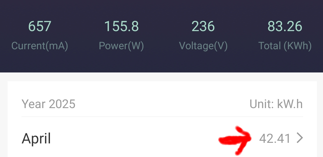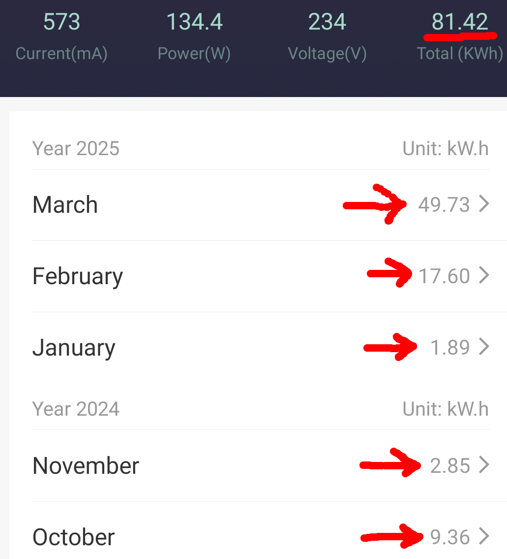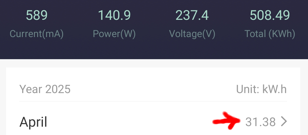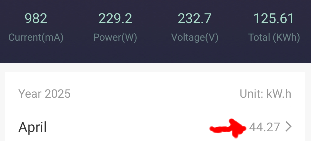 Was haben die drei Nacheinspeisungen nun im April 2 mal dynamisch (Summe 5,4kwh) und Konstant (2,7kwh) in das Haus und Wärmepumpe reingeschaufelt? 508,49kwh; 83,26kwh + 125,61kwh (=717,36kwh) sind in Summe seit der Inbetriebnahme (April 2024 und die 2 neuen 2025) von den Systemen ins Haus gepumpt worden. Damit werde ich von Jahr zu Jahr dokumentieren wann diese Systeme (Summe ca. 1600 Euro Investitionskosten) im Geld sind. Für den Monat April wurden von den 3 Systemen 118,06kwh Nachts in das Haus und die Buderus Heizung geschoben. Hier die 3 Anlagen (Tuya Einspeise-Steckdosen) mit Summenangaben und Monatswerten im Monats-Detail: