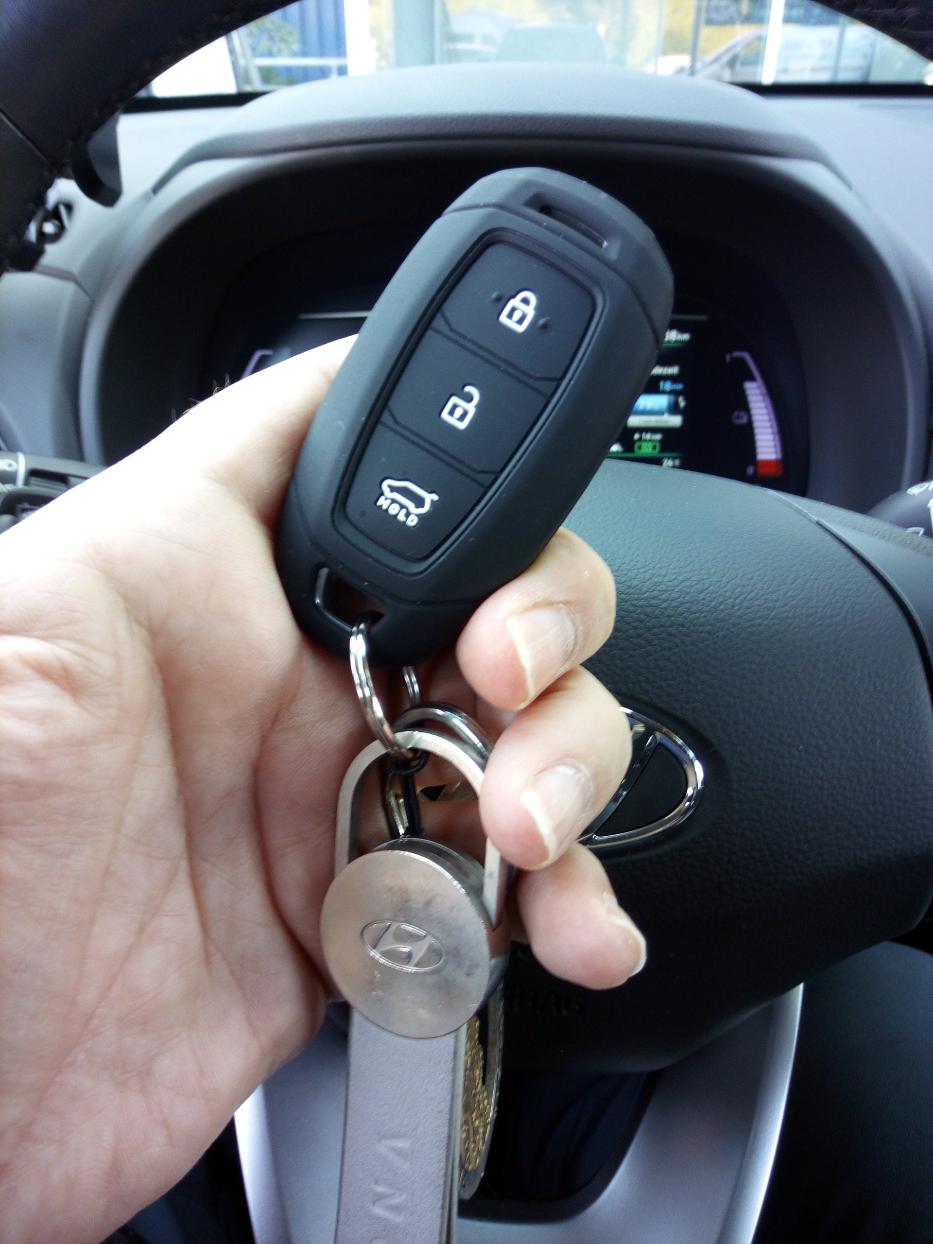 ...habe ich mein Hyundai Kona Electric Schlüssel-Komdom fuer 6,90 Euro übergezogen. Sitzt sehr stramm und absolut Passgenau und schützt den empfindlichen Schlüssel vor hässlichen Kratzern. Die Bedienung der 3 Tasten funktioniert natuerlich weiterhin problemlos und 100%ig sicher.