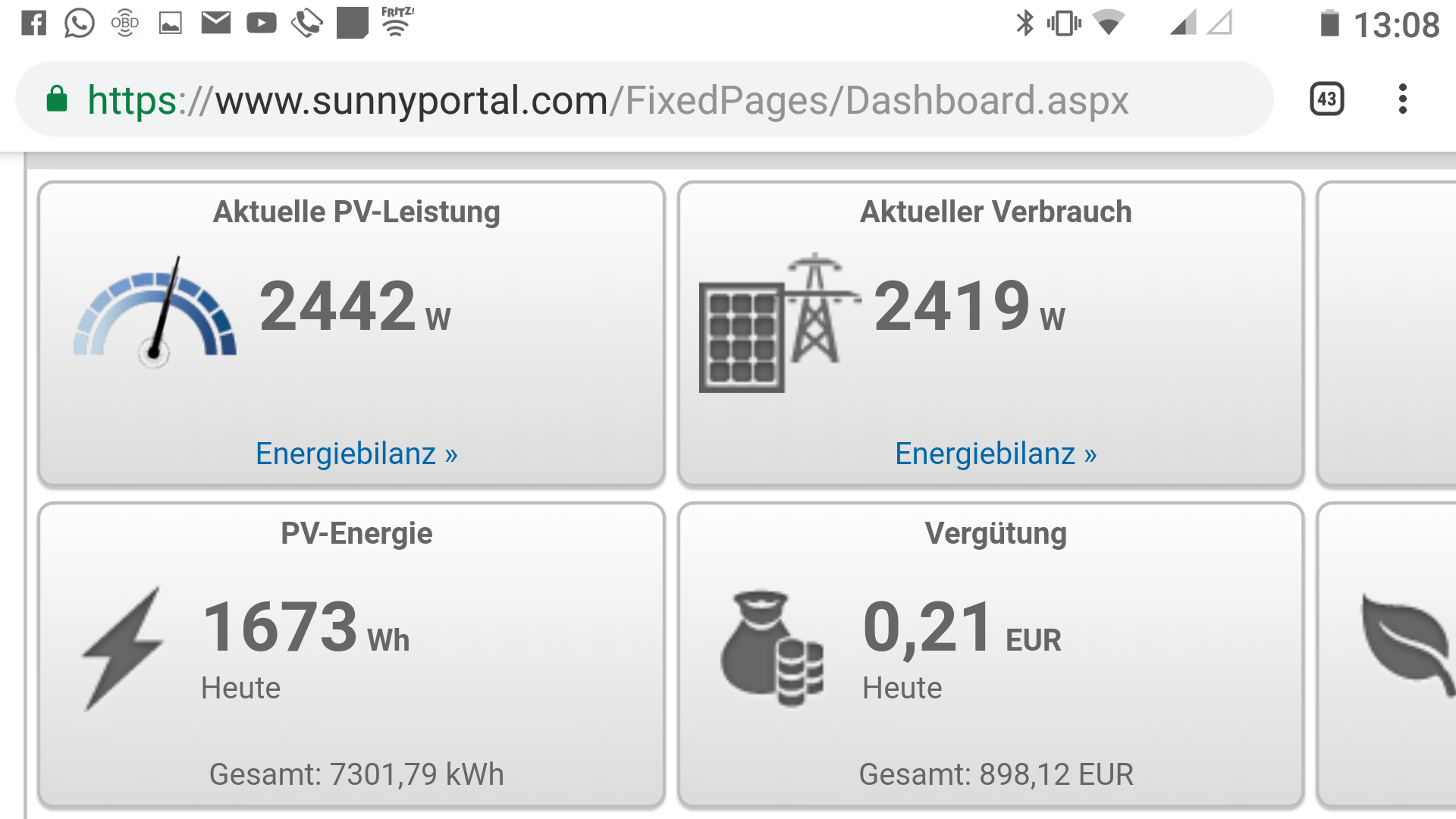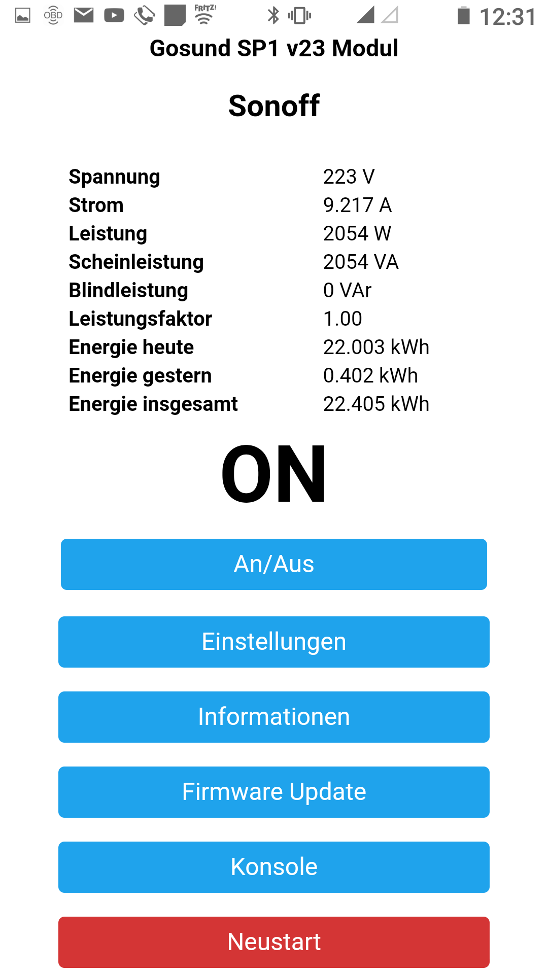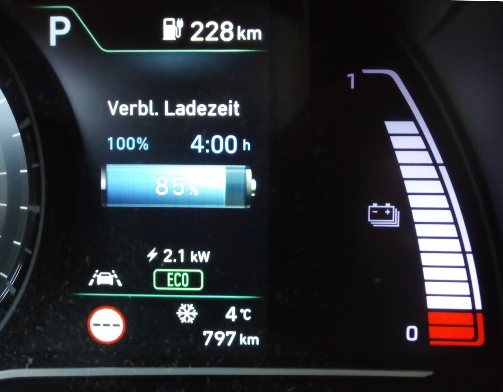 So endlich der erste schoene Tag hier im hohen Norden mit Sonne im Februar. Grund genug, ferngesteuert PV-Strom in den Kona umzuleiten. Den Ladeziegel hatte ich schon gestern in den Kona gestopft und heute vormittag beim Kaffee trinken die WLAN-Steckdose im Schuppen geschaltet. Ca. 15-20 Sekunden flossen 500 Watt durch die Dose und dann dauerhaft und konstant 2100 Watt. Habe den Ladeziegel auf 10 Ampere konfiguriert was ca. 2.1kw Ladestrom bedeutet. Das lass ich so rumduempeln bis die Sonne untergeht. Neugierig wie ich nun mal bin war ich natuerlich draussen und habe die Temperaturen (das Check ich auch nochmal am Ende heute Abend) der Kabel gecheckt. Waren wie erwartet Eiskalt und auch die Steckdosen ( in der Steckdose steckt die WLAN-Steckdose und dort die 3 Meter Verlaengerung) sind Kalt. Logisch bei diesem geringen Ladestrom...