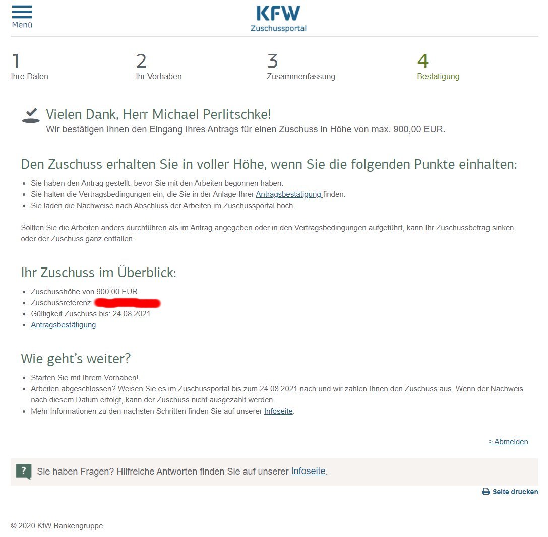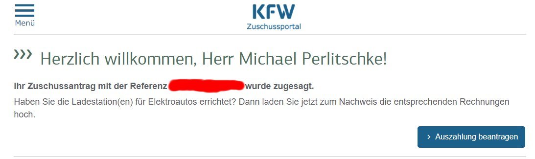 Wenn dann alles abgeschlossen ist, lädt man einen Nachweis des Energieversorgers ( wegen dem Oekostrom....nur der Besitz einer PV Anlage reicht da nicht!!!); die Rechnung der Wallbox und Rechnung der Installationskosten in das KFW Portal und erhält dann nach Prüfung die 900 Euro auf sein Konto ausgezahlt.