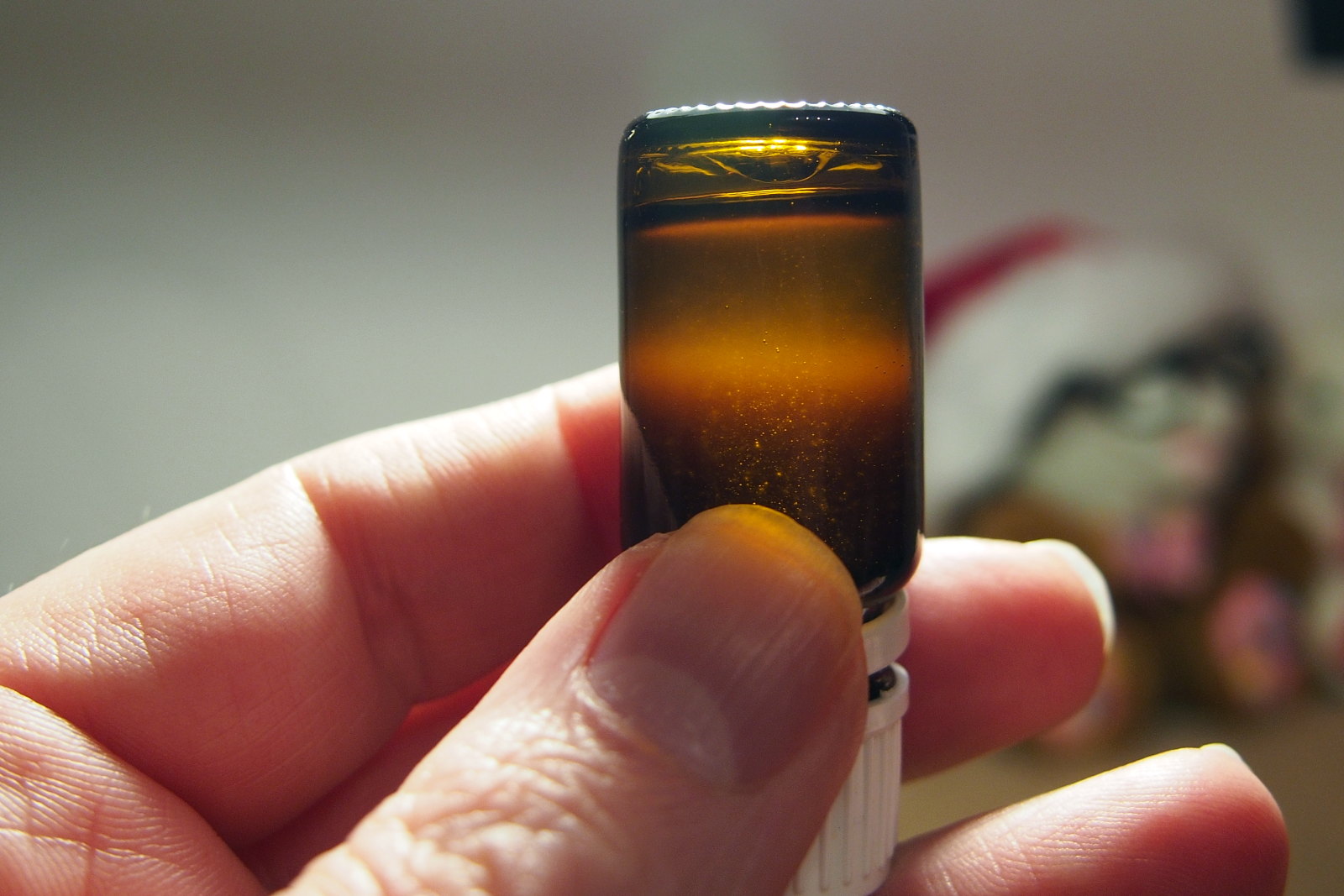 unter richtig viel licht konnte ich erkennen wie kleine flüssigkeitsblasen in der Basis-mische umher schwammen.
