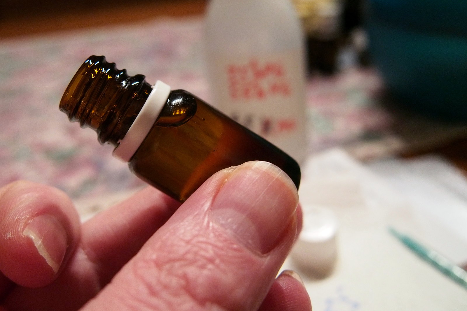das fertige Honigmelone-liquid perlt auch sehr merkwürdig am glastank runter.da ist mir das erst aufgefallen und hab es auch nach mehreren versuchen mit dem modifizierten milchaufschäumer nicht zu einer homogenen Flüssigkeit hin bekommen.nach einer gewissen Ruhezeit trennt sich wieder das Aroma von der übrigen Flüssigkeit und schwebt in durchsichtiger perlenform im übrigen liquid.