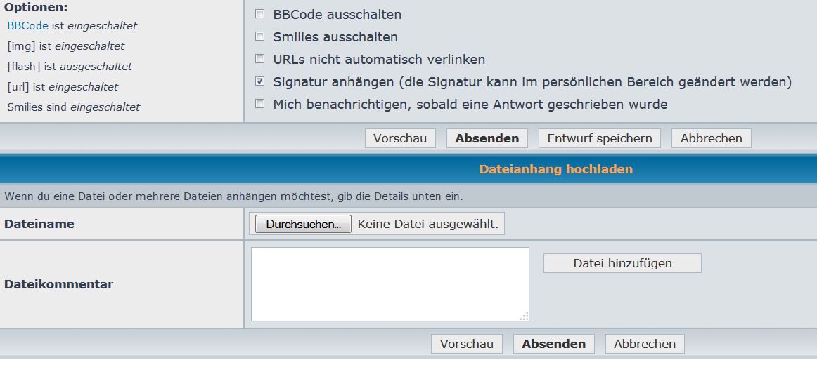 Magst Du mir erklären, wie das abläuft? Ich habe im Persönlichen Bereich nicht finden können, außer die Karteikarte "Dateianhänge verwalten". Aber da lässt sich nichts hinzufügen. Auch in den FAQs finde ich nichts...
