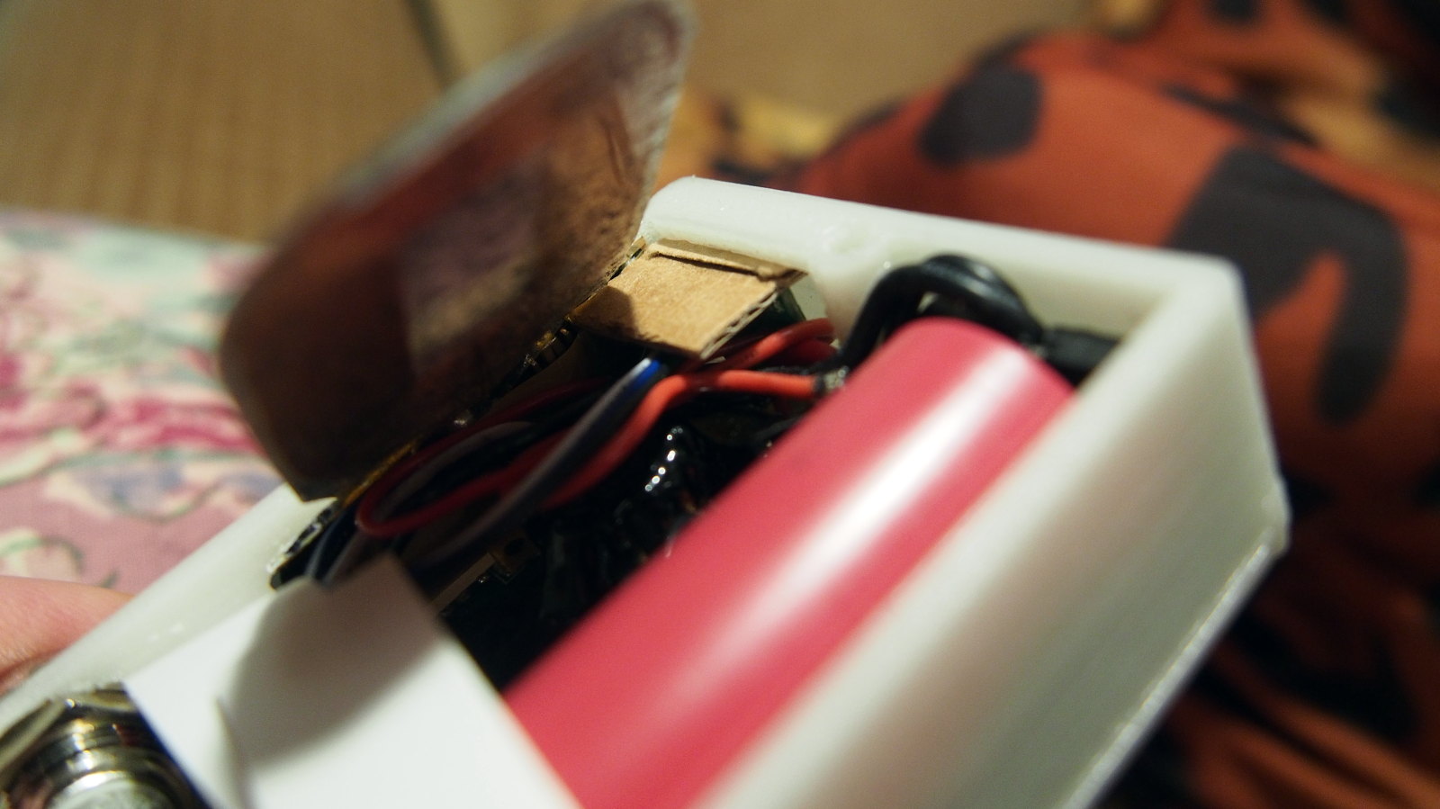 Ich kann mir gut vorstellen, dass anstatt der Pappe ein paar "Manipulationen" direkt am Design das USB - Board so festknallen würde - das weder Kleber noch Pappe notwendig wären