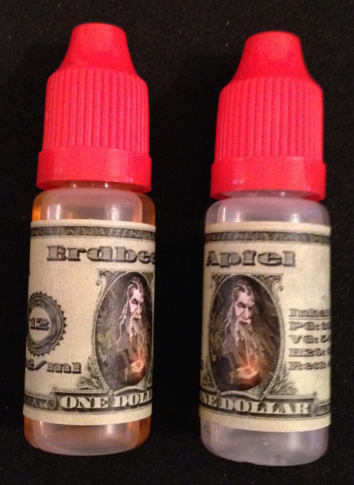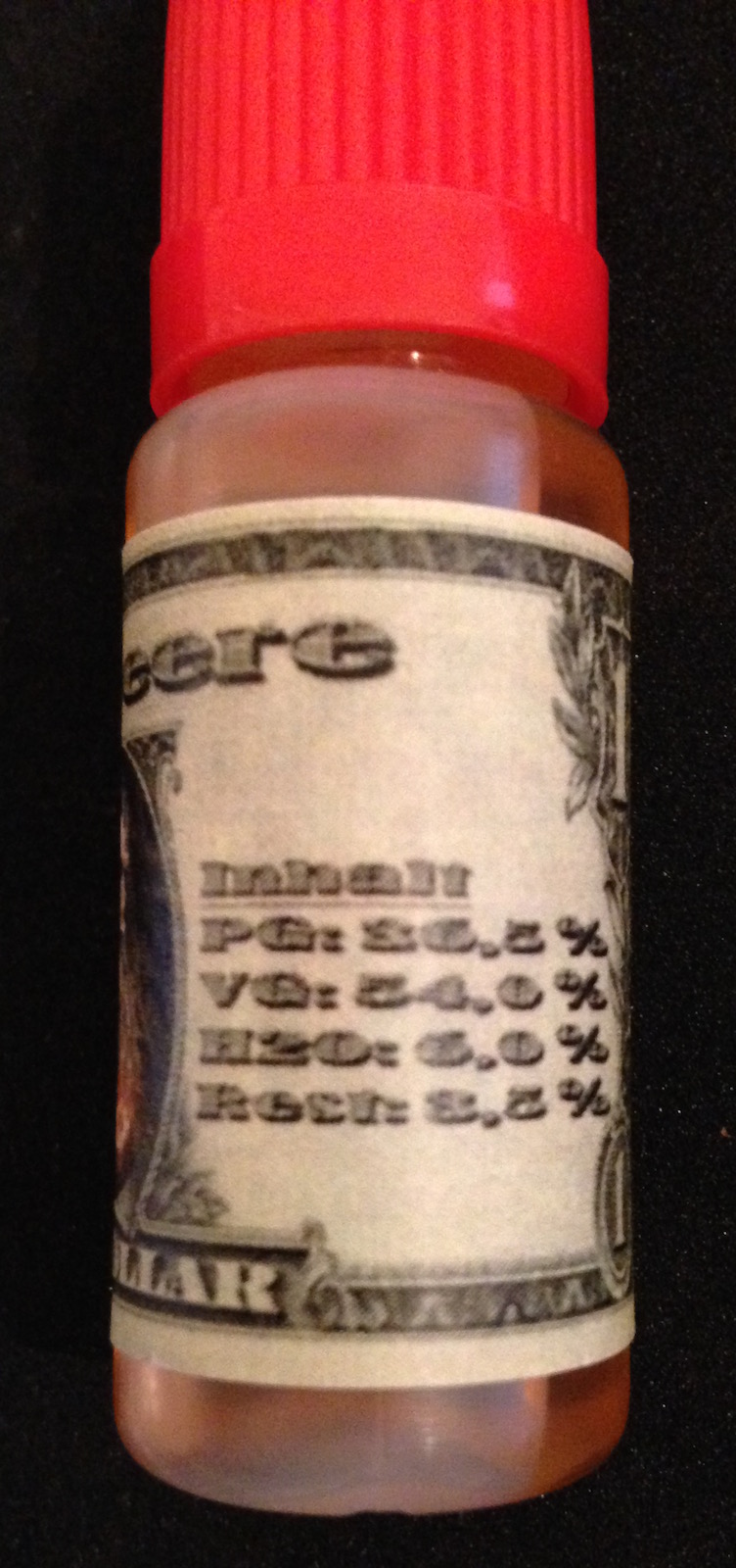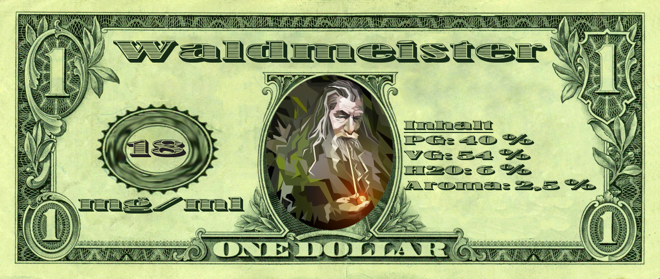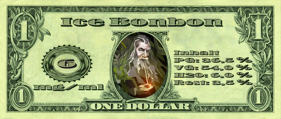 Man könnte auch anstatt "One Dollar" unten hinschreiben was das Liquid zusammengemischt inkl. aroma gekostet hat. Also in Schreibschrift wie z.b. 35 Cent: Thirty Five Cent