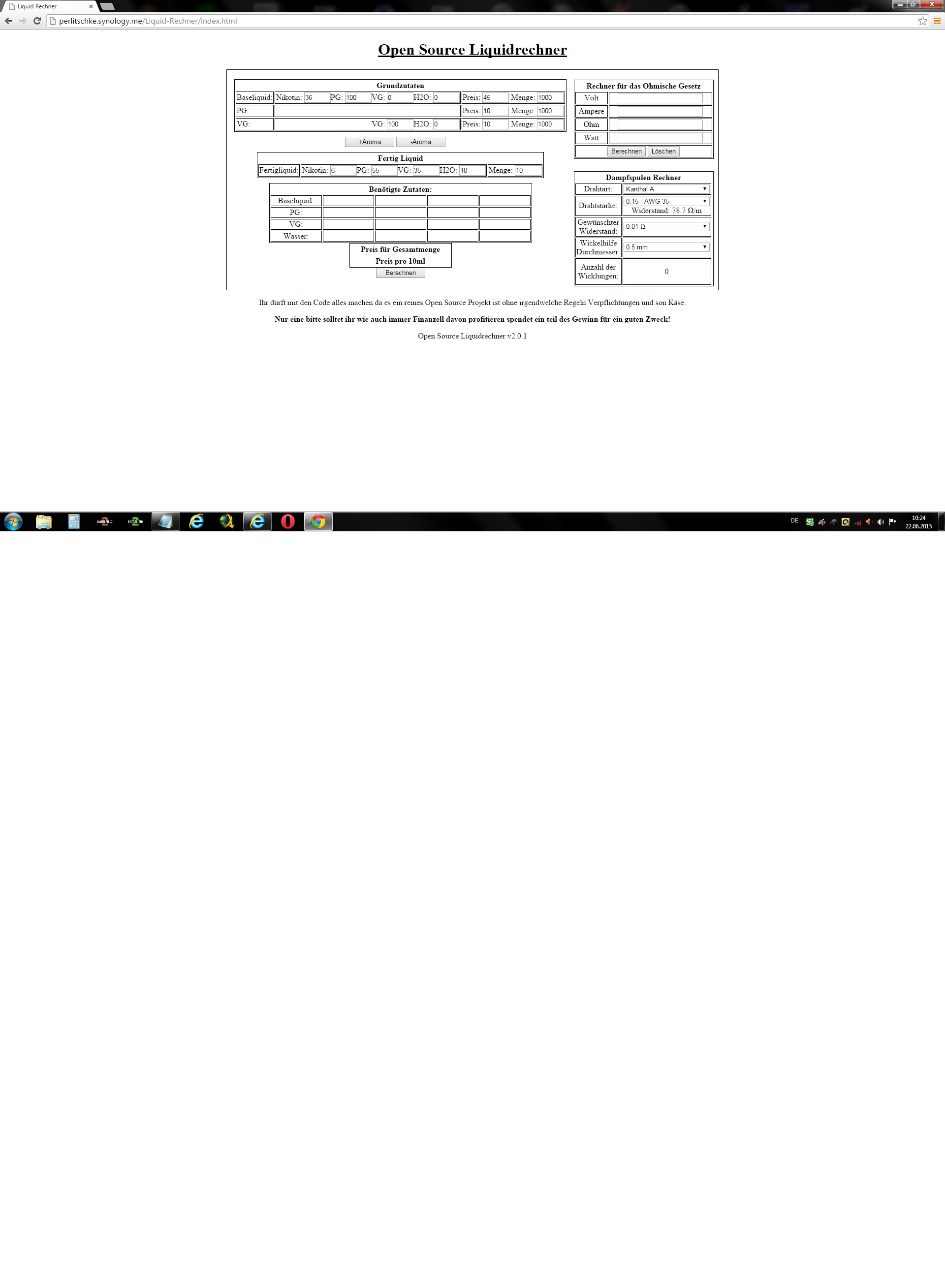 Aber die Rechte Seite Ohmrechner Draht usw. kann ich persönlich nix einstellen(Eingabe ja)