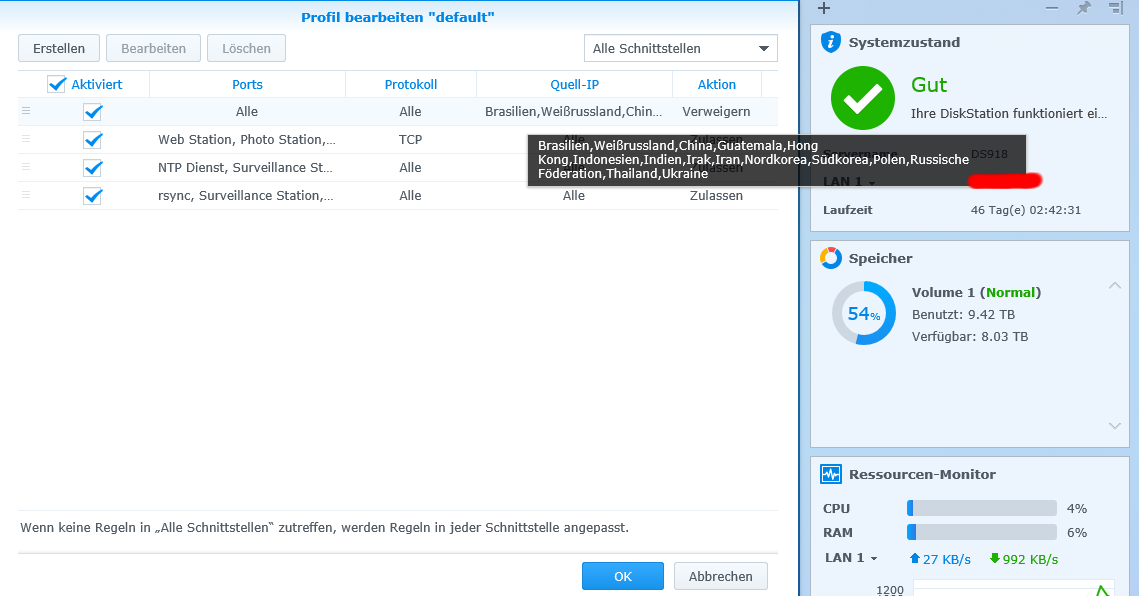 Synology Firewall Regeln und Reihenfolge...