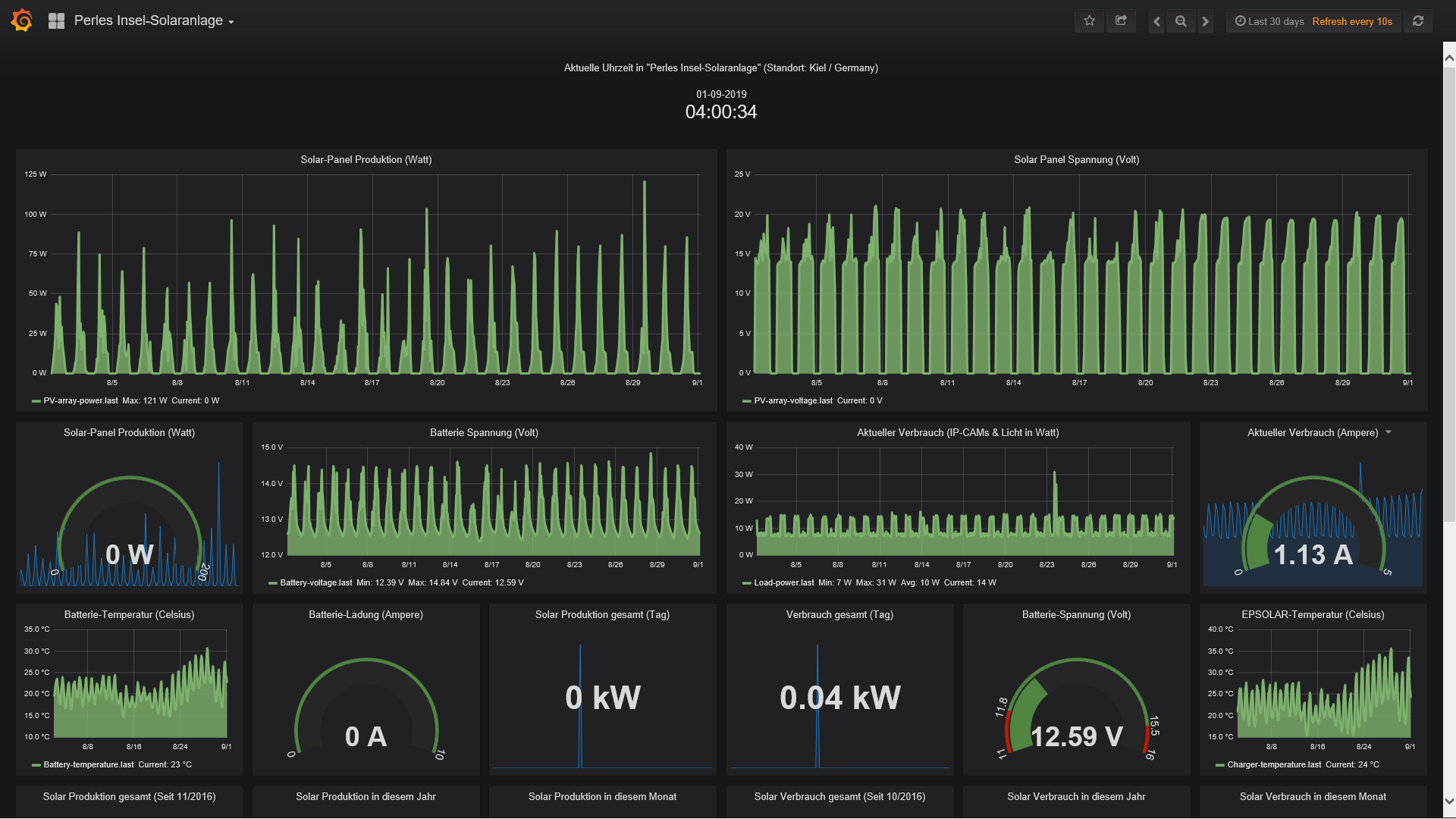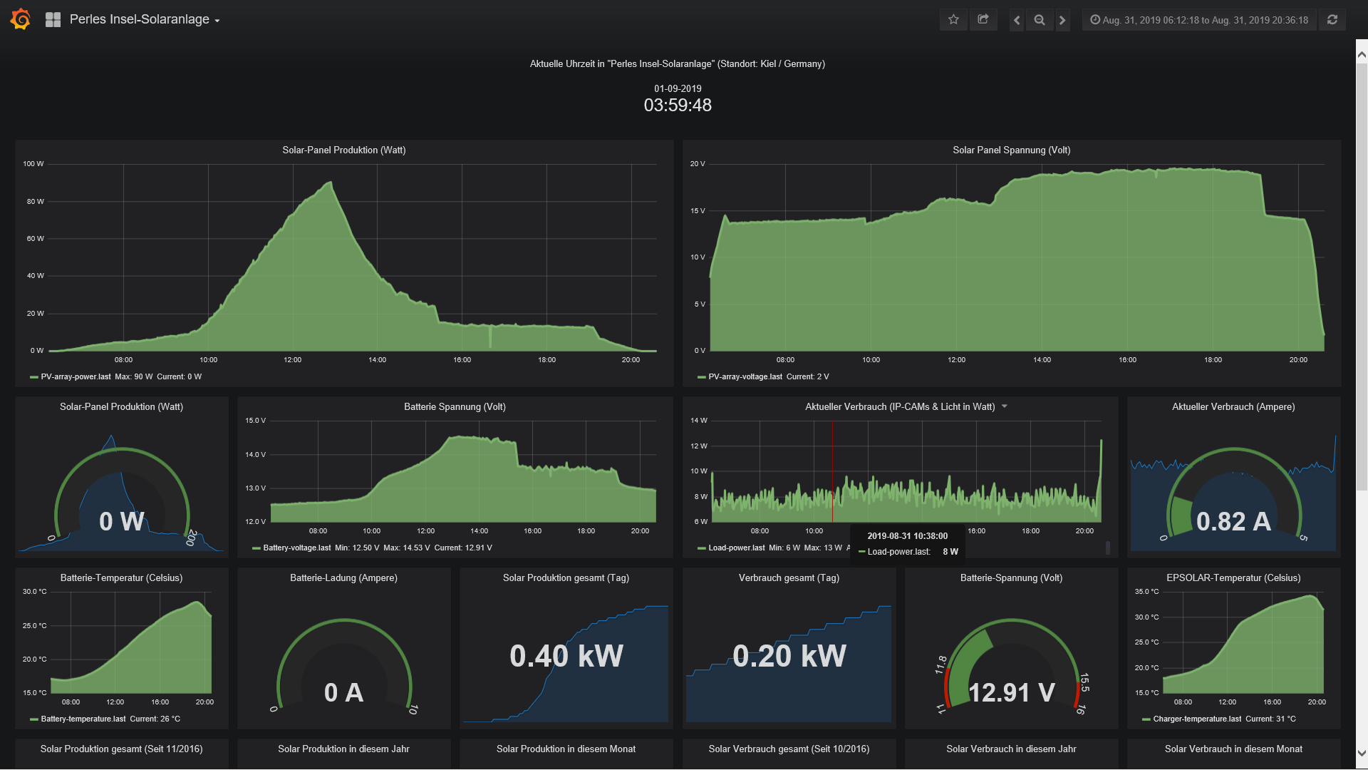 Hier noch zwei Screen-Shots die das Insel Solaranlagen System im August zeigen: