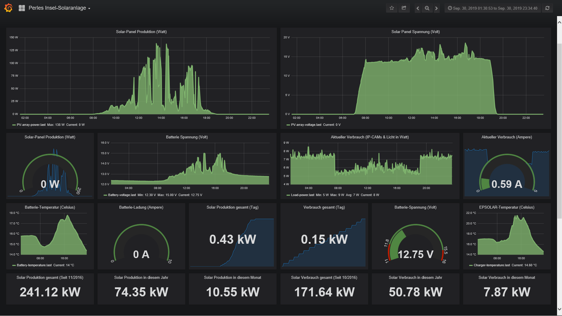 Hier noch zwei Screen-Shots die das Insel Solaranlagen System im September zeigen:
