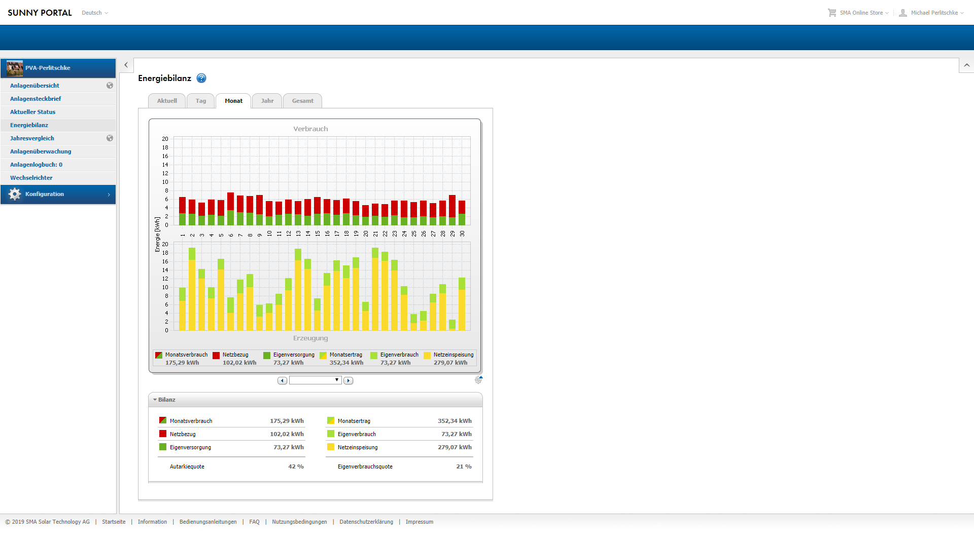 -April: 55,23 Euro Gewinn durch Verkauf und Einsparung durch Eigenverbrauch 27,32 Euro: Summe 82,55 Euro