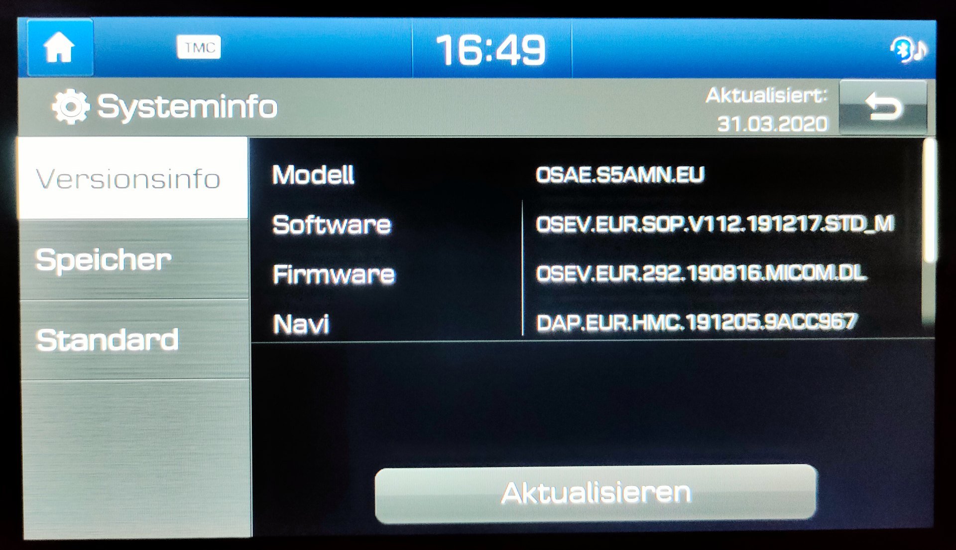 hier der letzte von mir 03/2020 eingespielte Firmware/Software & Maps Stand des Multimedia-Systems: