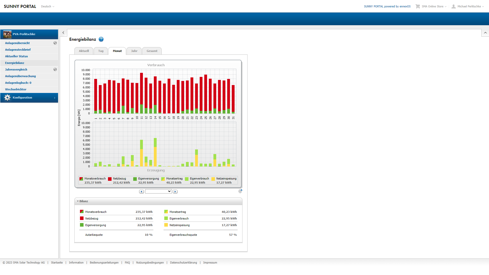 -Juli: 50,51 Euro Gewinn durch Verkauf und Einsparung durch Eigenverbrauch 34,69 Euro: Summe 85,20 Euro