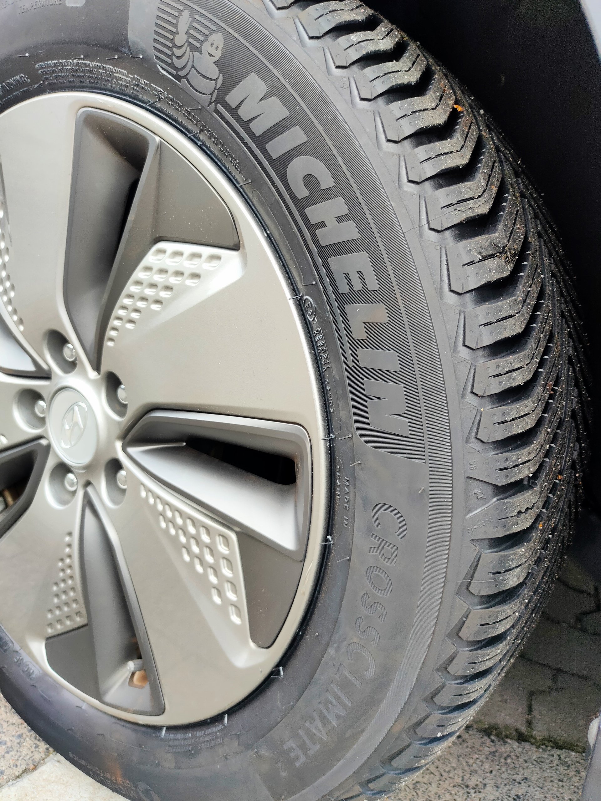 Hyundai Kona Electric: Nach 46000km 2 Ganzjahressreifen vorn erneuert (Michelin CrossClimate2)