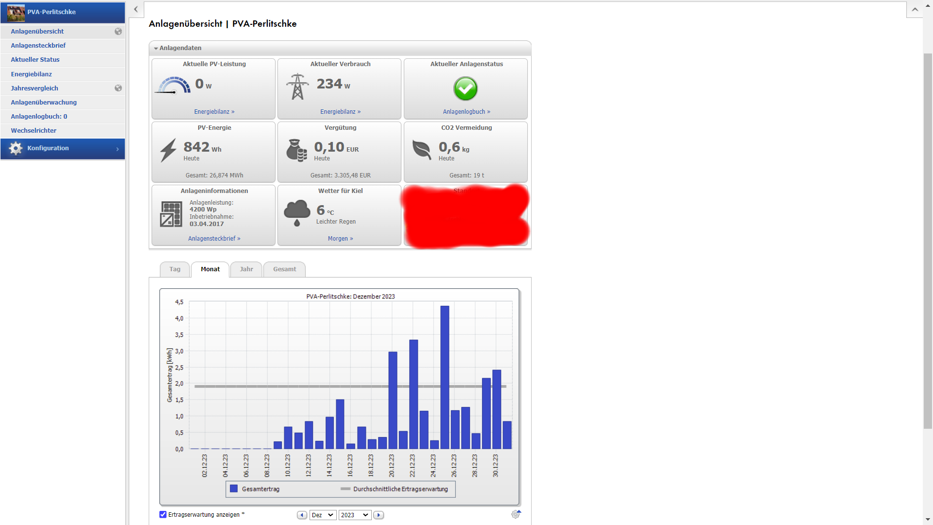 Hier die 4.2kwp Photovoltaik-Anlage auf dem Dach: Konnte die 4,2kwp (4200Watt) Anlage auf dem Dach etwas im November und Dezember reissen? Ihr ahnt es schon, der November und Dezember waren Negativ-Rekord Monate. So wenig ist seit der Inbetriebnahme noch nie vom Dach gekommen (was aber auch mit dem Schnee zu tun hat der die Panel wie ein Tuch abdeckte). Ertrag gab es die letzten 60 Tage kaum, wobei das aber egal ist, da im November und Dezember selbst wenn es gut läuft kaum etwas rum kommt. Aber nun mit dem Oktober 2023 drei Monate infolge Negativ-Produktions Rekorde ist sehr ernüchternd. Die Ertragserwartung für den November lag bei 117,64kwh und vom Dach kamen nur gruselige 56,55kwh (52% Minus!). Aber der Dezember hat selbst das noch nach unten getoppt, denn die Ertragserwartung lag bei 58,99kwh und es tröpfelten lediglich 27,25kwh (54% Minus) vom Dach. Das ist seit Inbetriebnahme 2017 nun satte 3 Monate in Folge ein absoluter Negativ-Rekord. Diese beiden Monate waren VERNICHTEND schlecht. Ok, ein kleiner Trost bleibt, November & Dezember sind ohnehin keine wirtschaftlich wichtigen Monate. ich wäre nicht Perle, wenn mir nicht immer neue Dinge einfallen würden die einem Geld sparen und Profitalilität der Dachanlage erhöhen. Also habe ich im Black Friday November mal mit einem spitzen Beistift nachgerechnet und kam zu dem Entschluss das ich mir eine "Konstant-Nacheinspeisung" mit einem 2,7kw Akkuspeicher selbst bauen werde. Dieser soll dann pro Jahr knapp 500 kwh meines quasi selbst produzierten kostenlosen Stroms in den Akku schaufeln, welcher dann Nachts die eingespeicherte Energie wieder in das Haus reinschiebt (diese also nicht mehr teuer gekauft werden muss). Das ganze rechnet sich über zwei Faktoren: