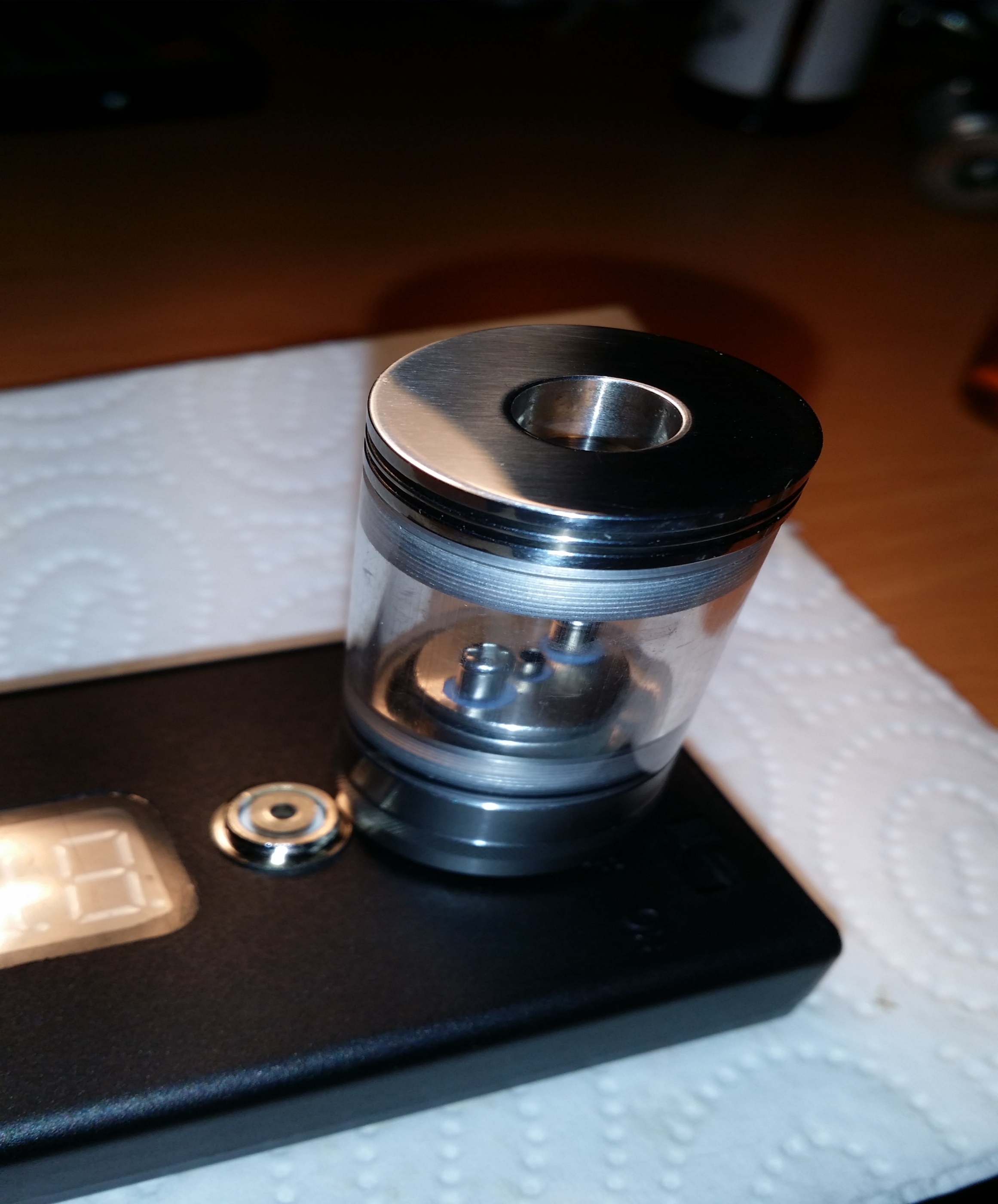 Mein GT macht mich fertig resp. das Oberteil wo das Drip-Tip (Top-Cap) eingesteckt wird. Dort hat sich das Luftzugrohr ( das ist nur in dem oberen Deckel verpresst ) geloest. Habe es mittels Sek. Kleber wieder verpresst, aber das ist schon so dermassen scheisse verarbeitet, dass es im wahrste Sinne des Wortes wie wild eiert und ich den Tank nicht sauber verschraubt bekomme. Das nervt mich Kollosal und ist sicherlich nicht gesund fuer die Kunststoff-Gewinde...